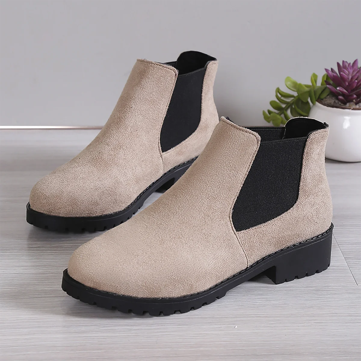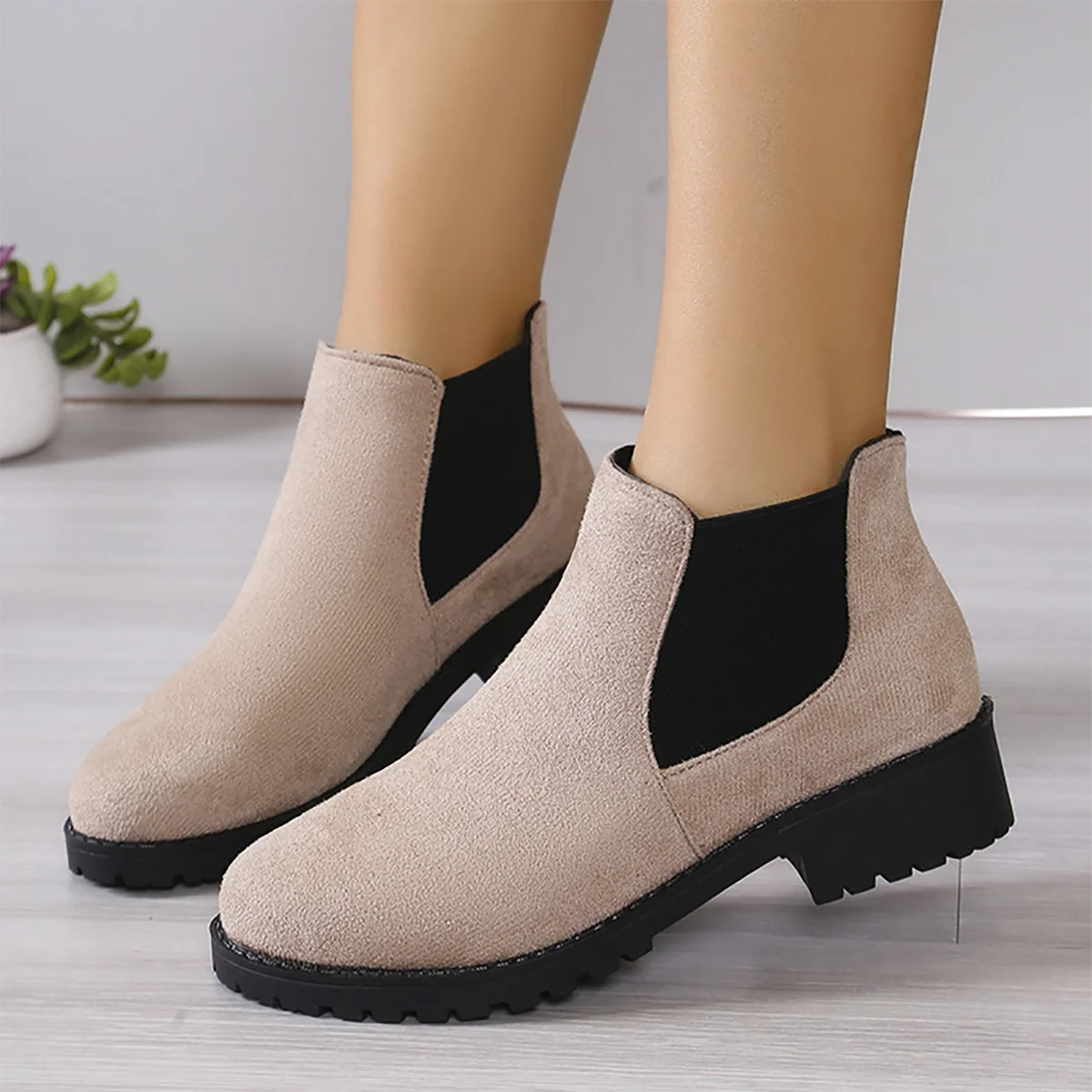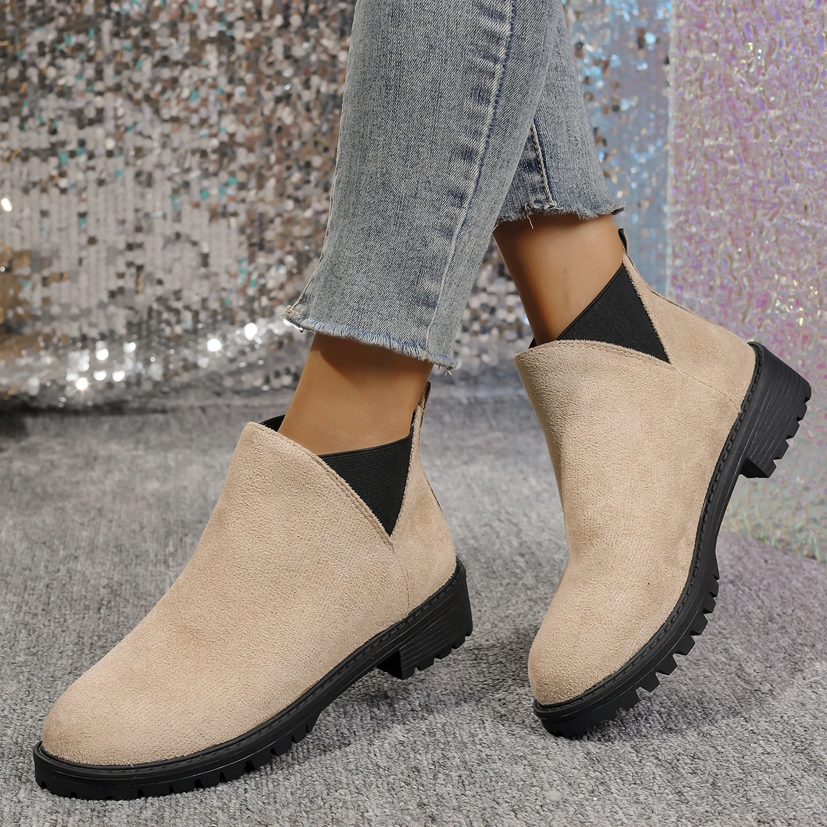- > Botas de camurça volumosas para mulheres, moda casual, dedo do pé redondo, corte V, saltos de 7cm para trabalho, roupas antiderrapantes