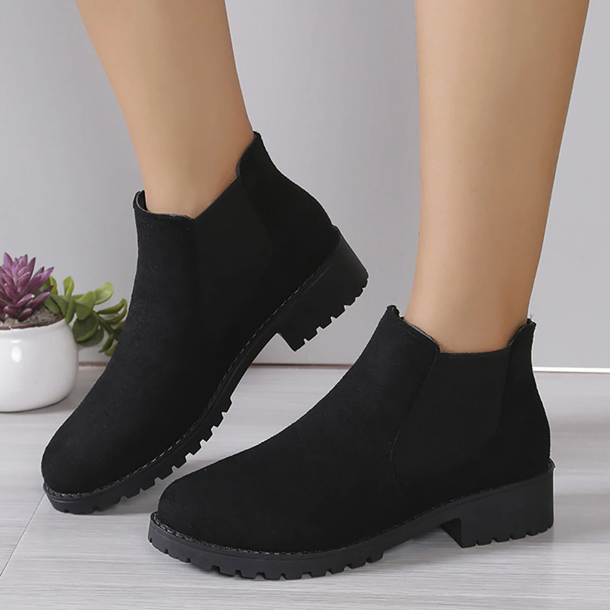 Botas de camurça volumosas para mulheres, moda casual, dedo do pé redondo, corte V, saltos de 7cm para trabalho, roupas antiderrapantes