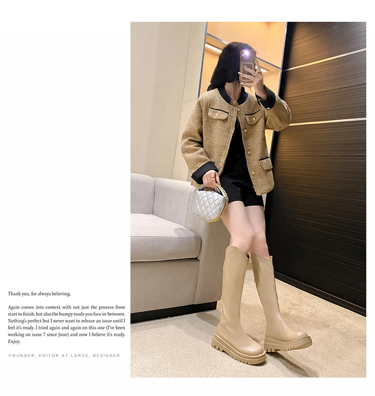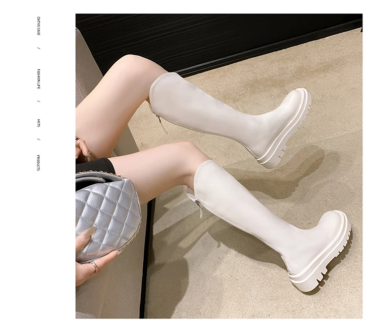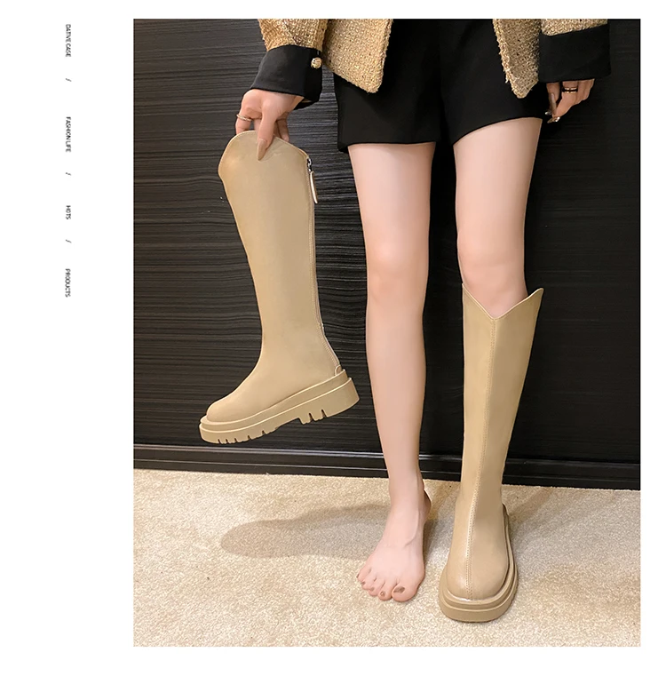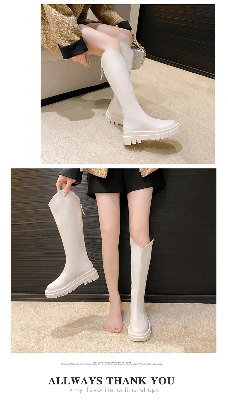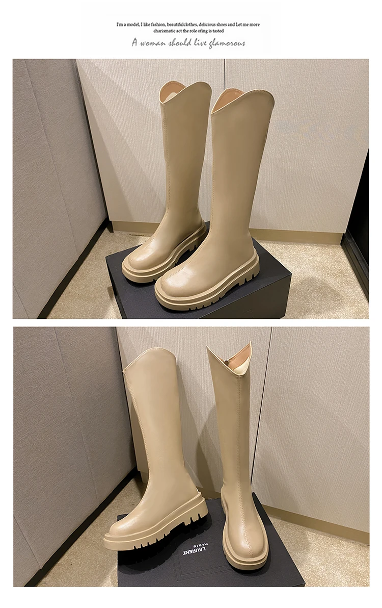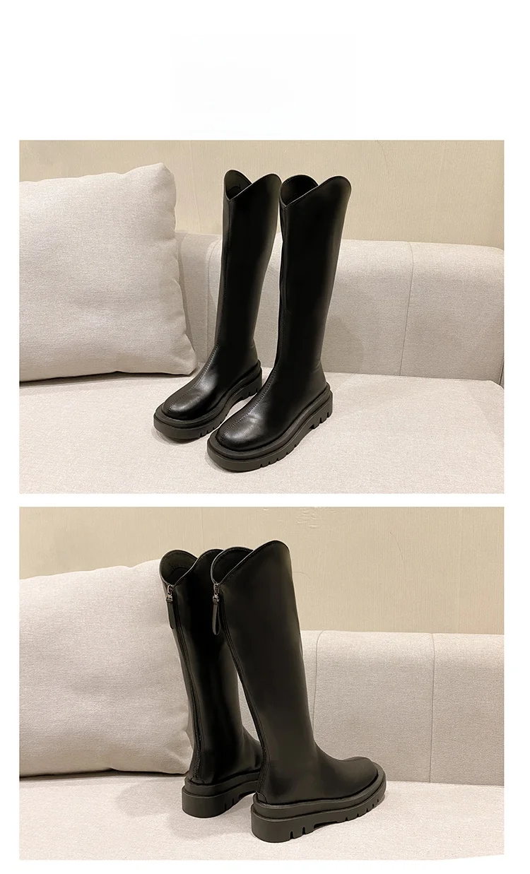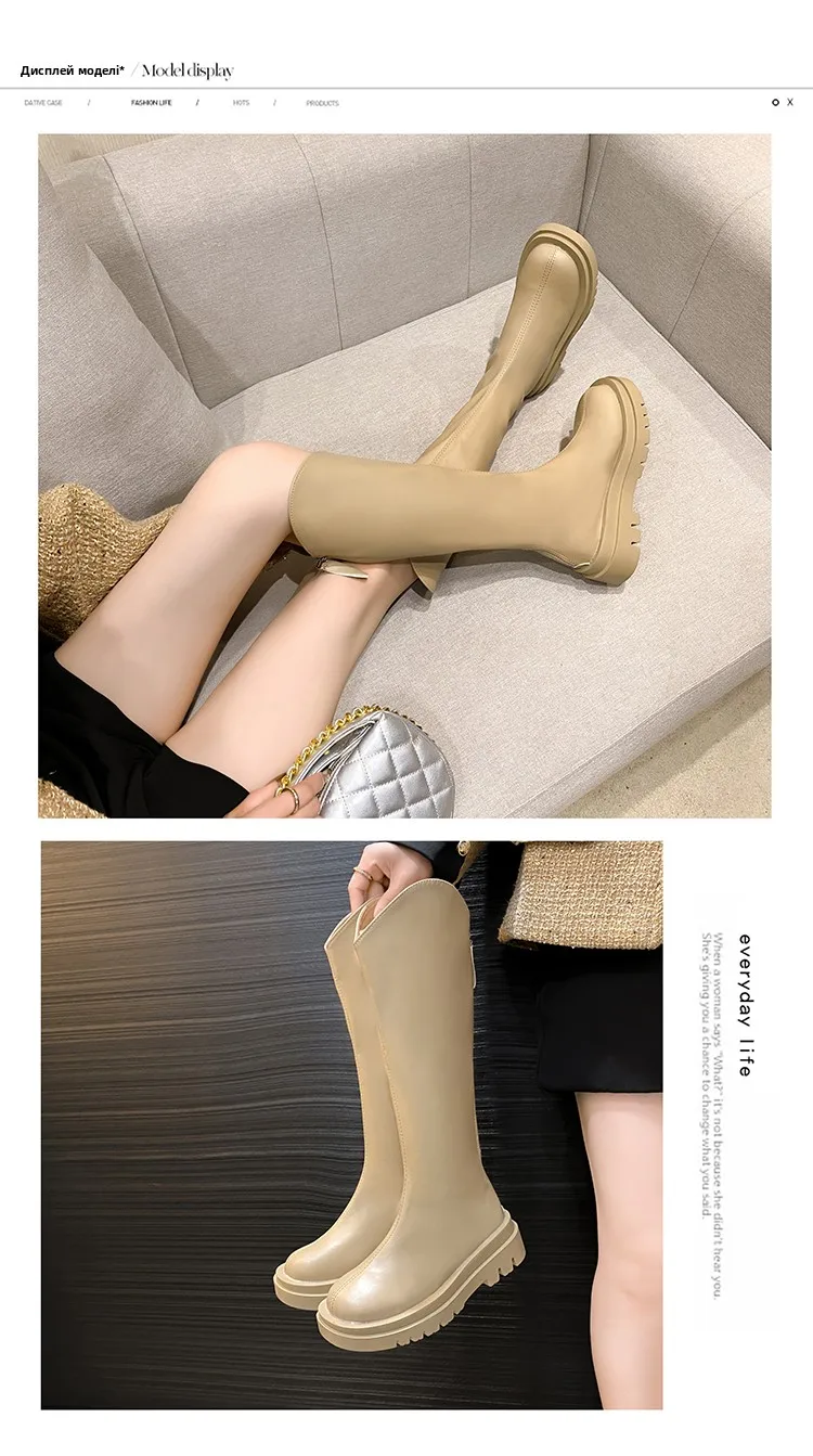 - > Botas de Cano Alto Estilo Britânico Fenas da Moda com Sola ssa, Botas Longas Impermeáveis com Platorma, Bico ...