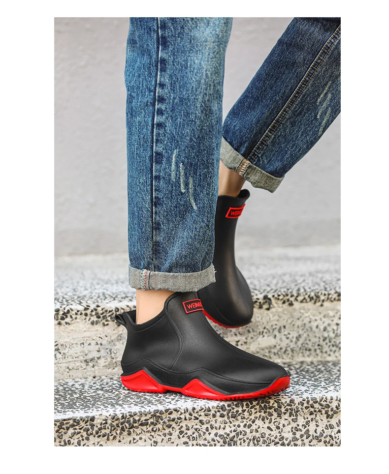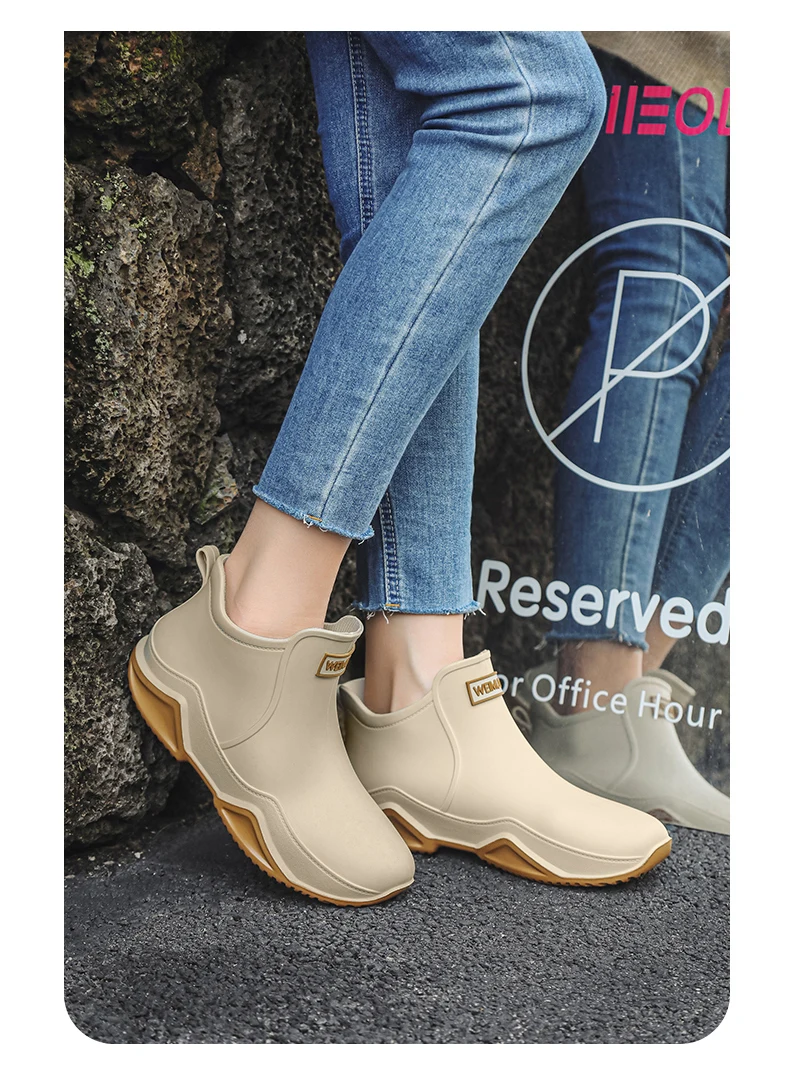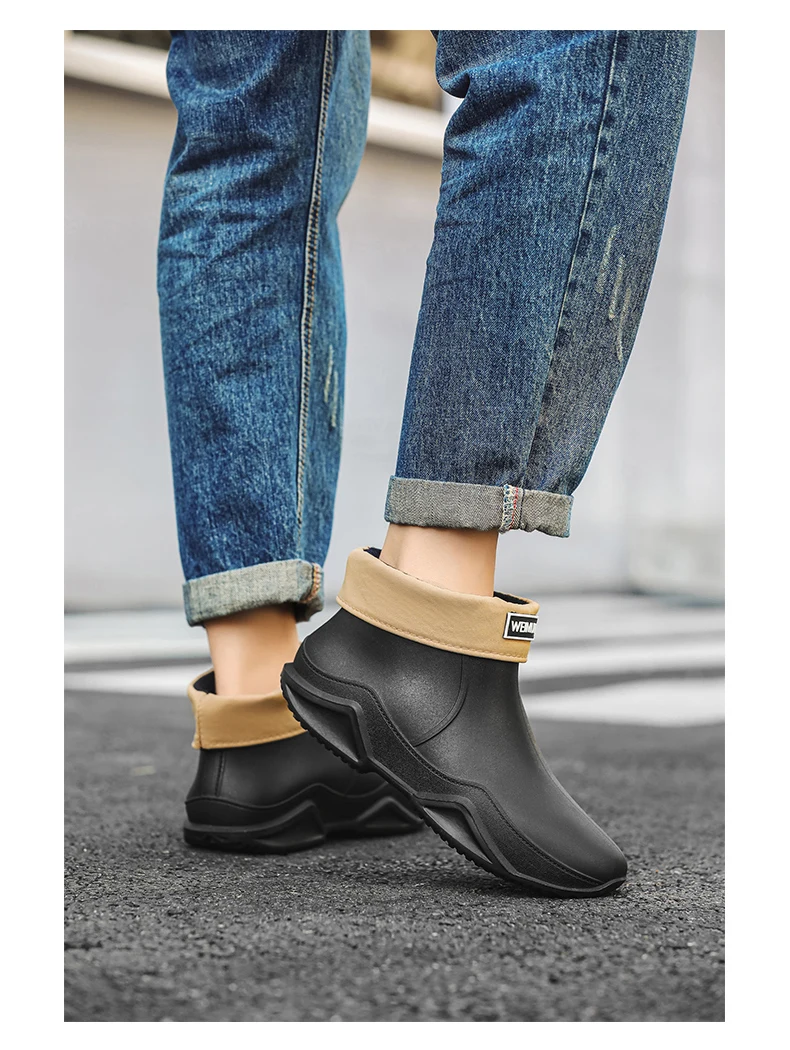 - > Botas de chuva antiderrapante impermeáveis para homens, sapatos de tornozelo alto para casal, caminhadas, pesca, água, chef, trabalho, ao ar livre, moda, novo