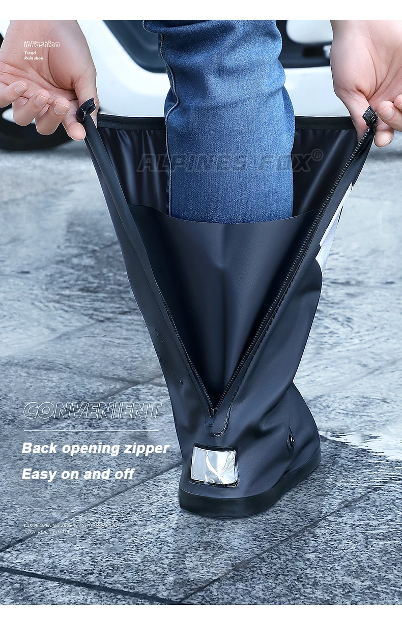 - > Botas de chuva de tubo alto para motocicleta, calçados impermeáveis, reflexivos e antiderrapantes, acessórios de proteção reutilizáveis para ciclismo