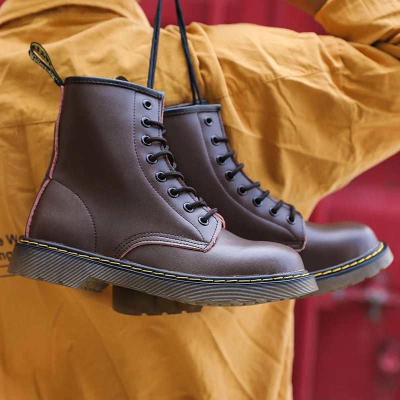 - > Botas de couro genuíno clássico de seis furos para homens e mulheres, bota curta, bota de equitação ao ar livre, estilo britânico, moda, tamanho 35-48