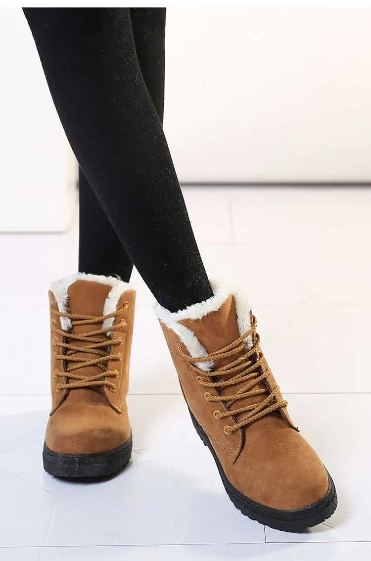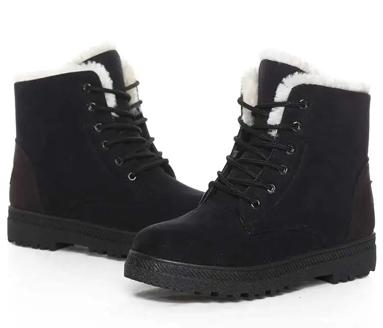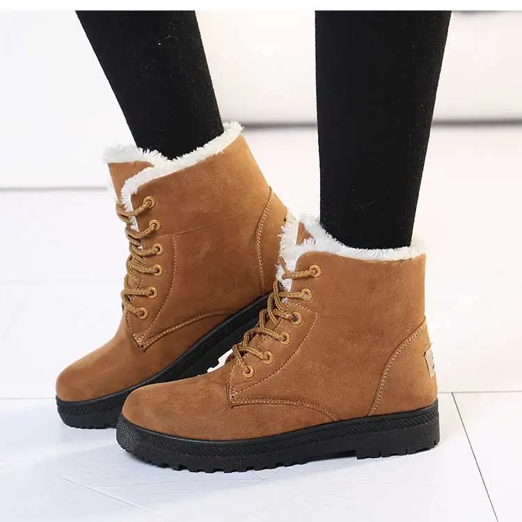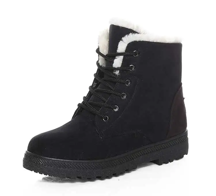 Botas de inverno femininas de salto baixo botas femininas com pele quente sapatos de inverno botas de neve tornozelo botas mujer calçados de inverno feminino