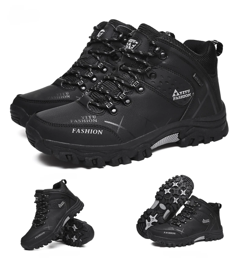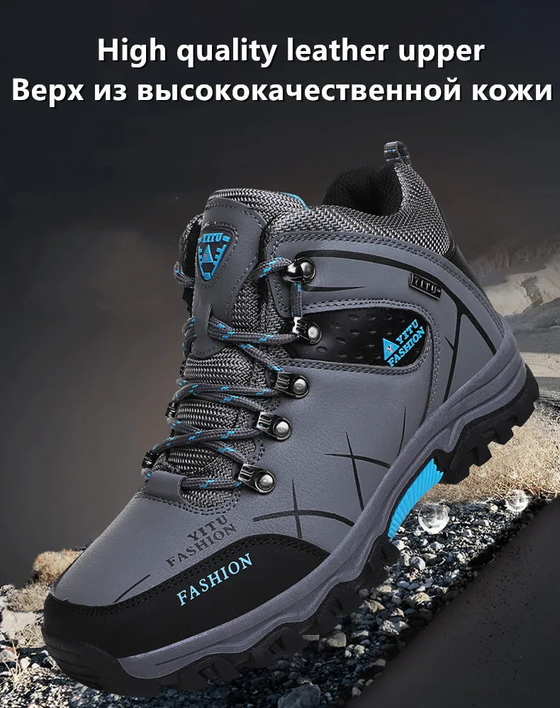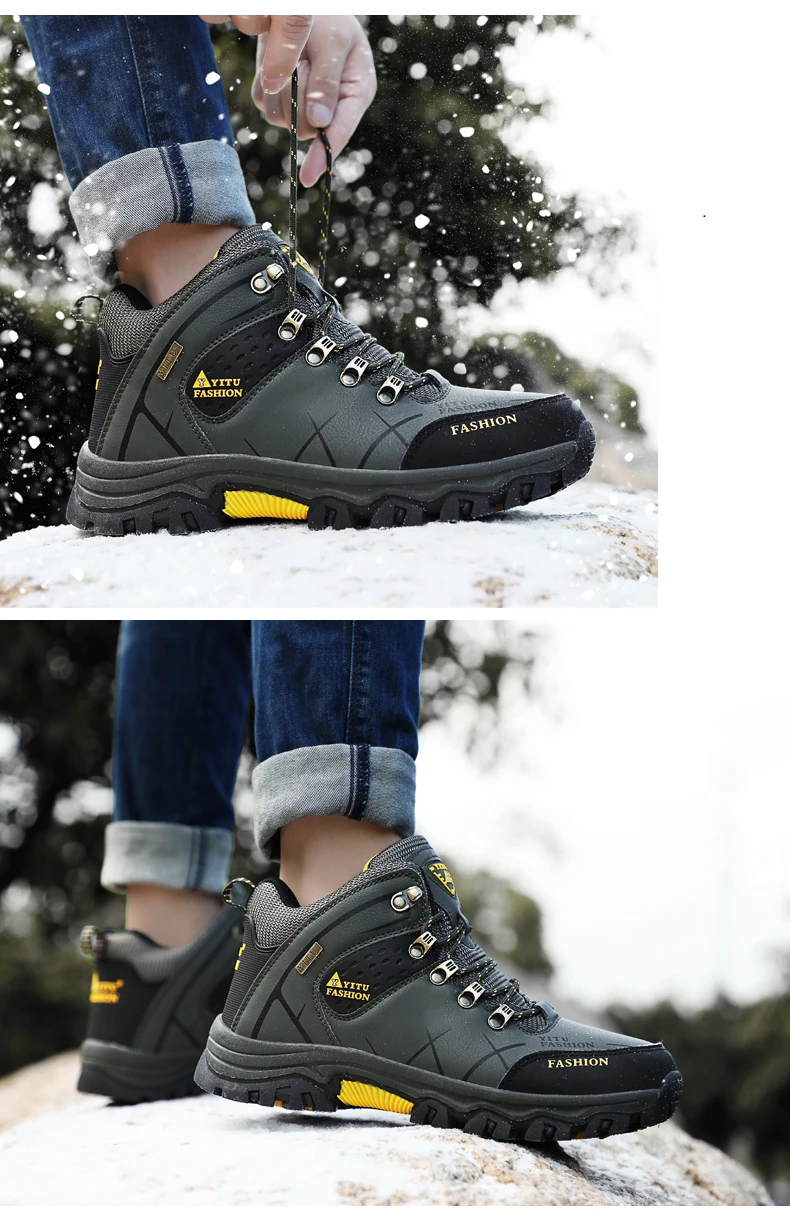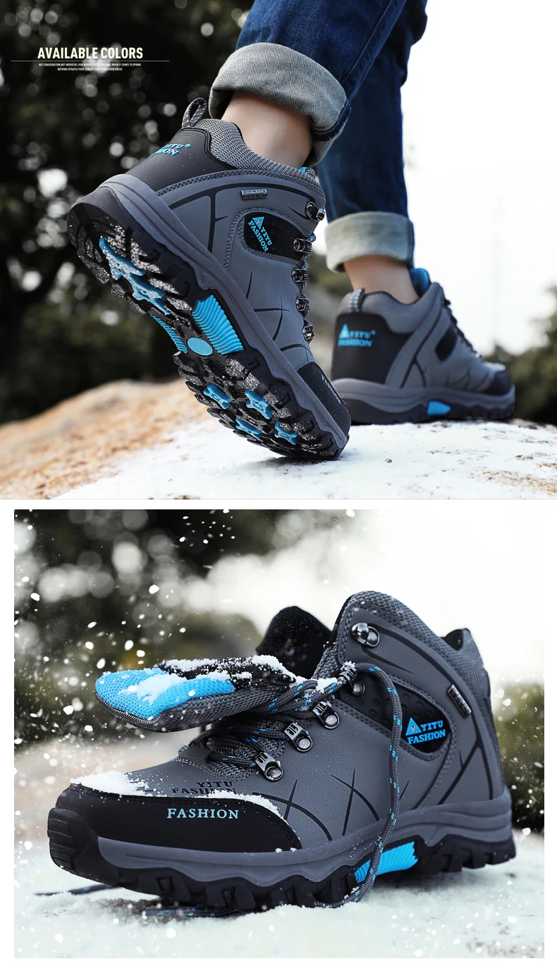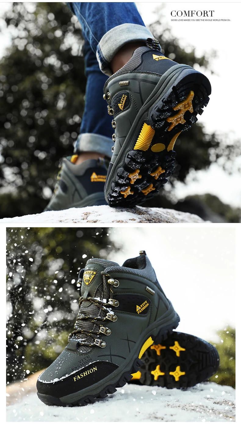 - > Botas de neve de couro impermeáveis para homens, tênis super quentes, botas de caminhada ao ar livre, sapatos de trabalho, marca de inverno, tamanho 39-47