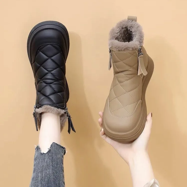 - > Botas de Neve de Couro Real para Mulheres, Novo Estilo de Outono Inverno, Calçados Quentes com Forro de Lã, Solado Antiderrap...