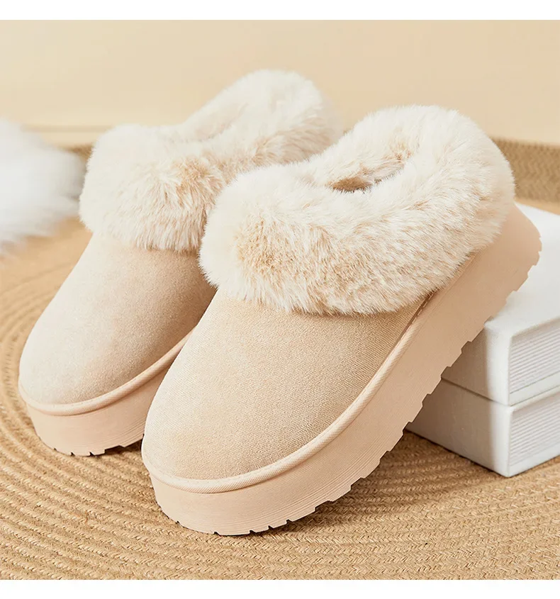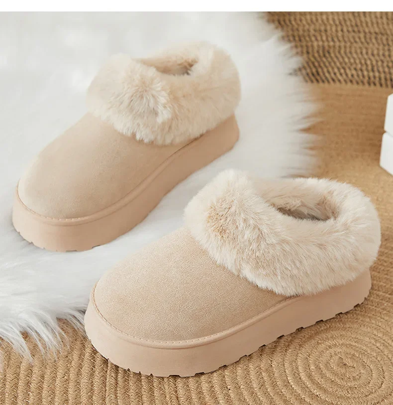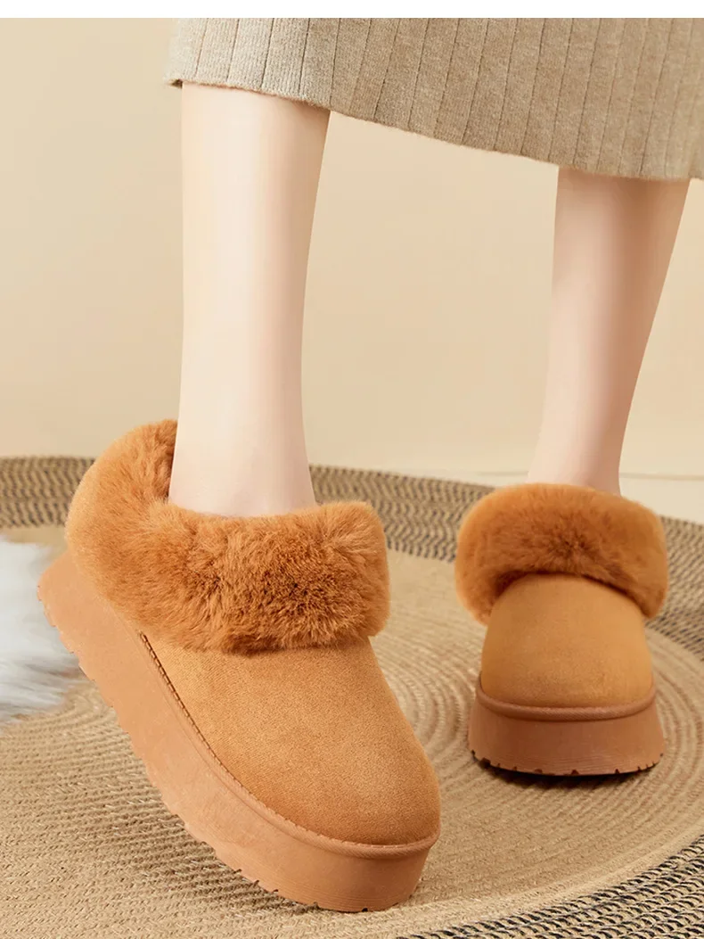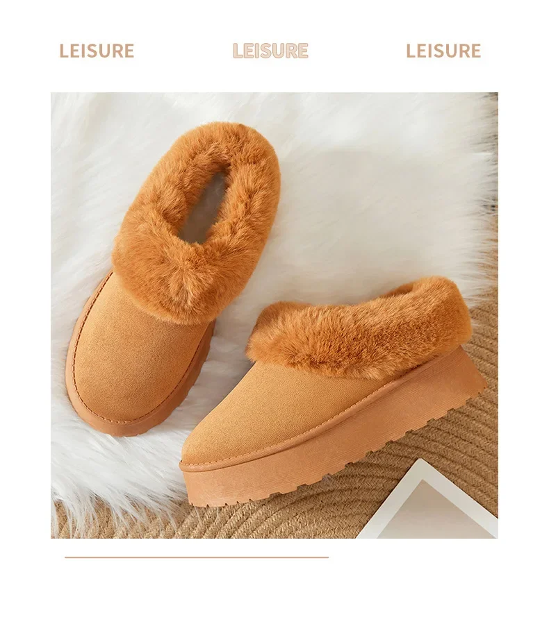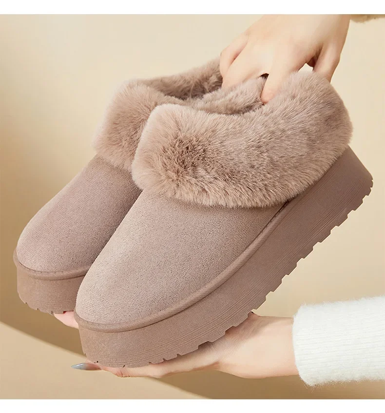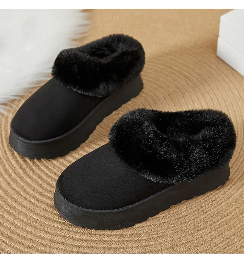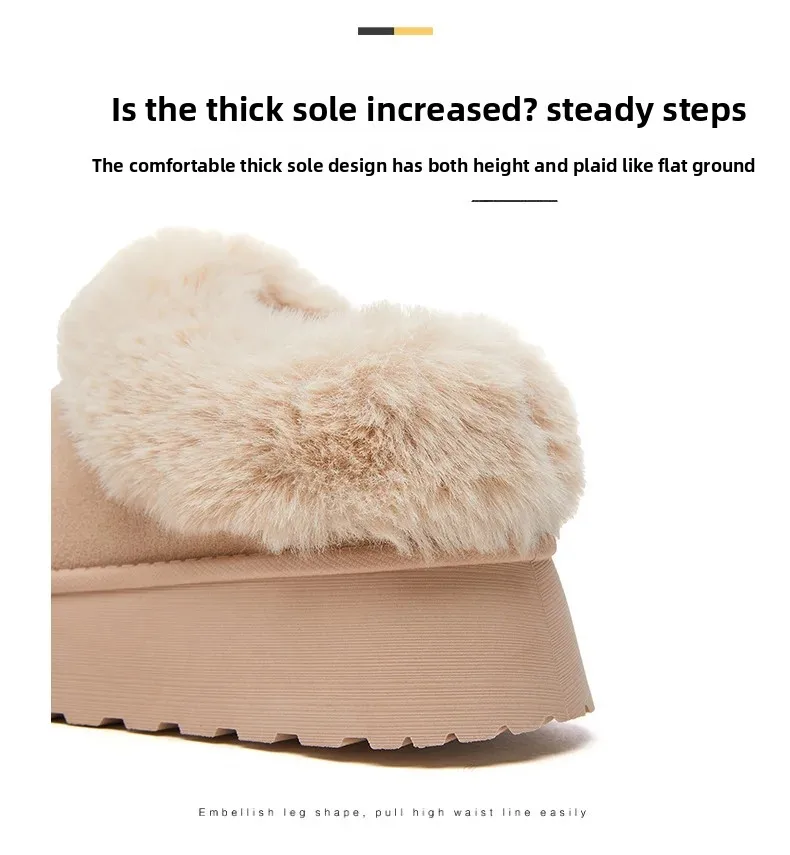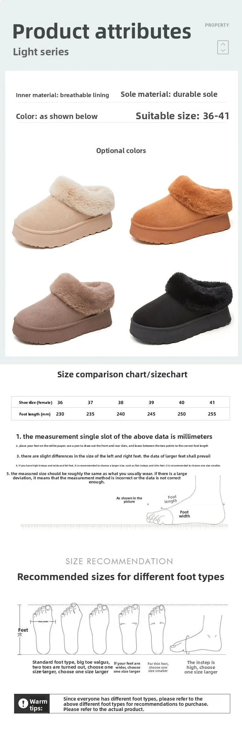 - > Botas de neve de fundo grosso feminino outono inverno novo estilo casual quente velo forrado pão sapato de algodão transfronteiriço