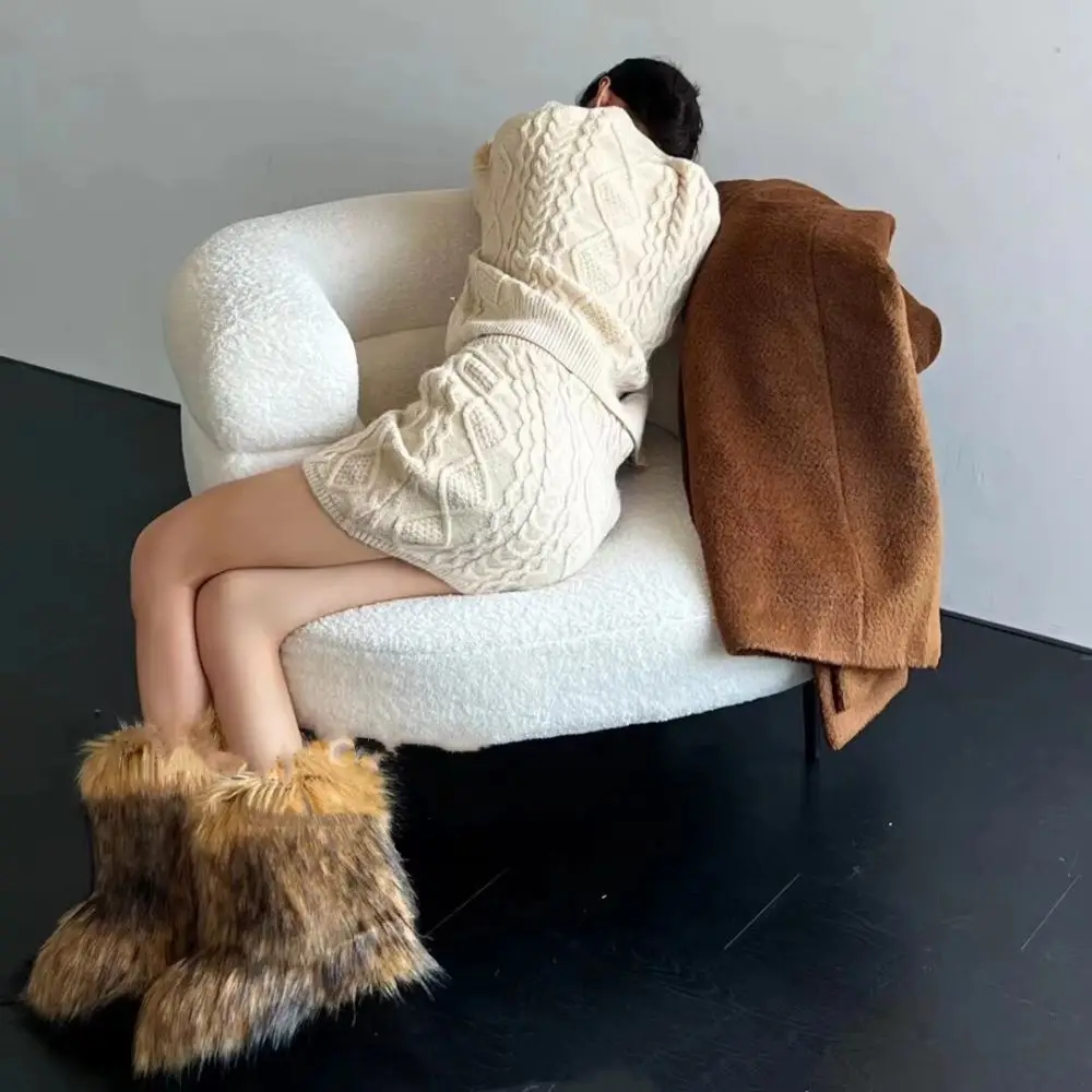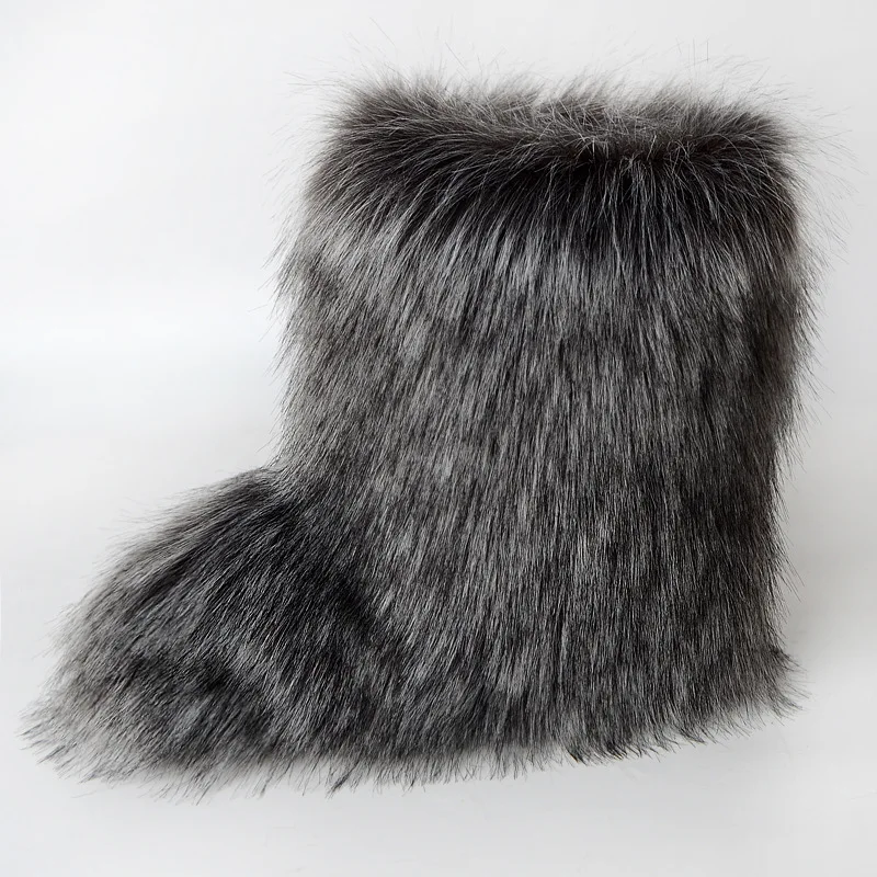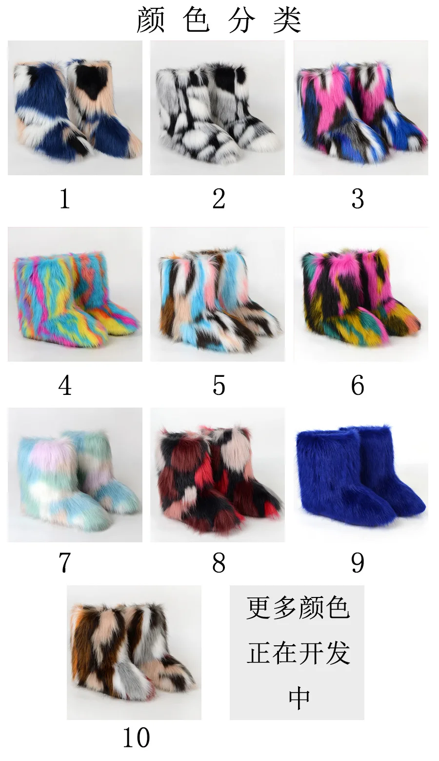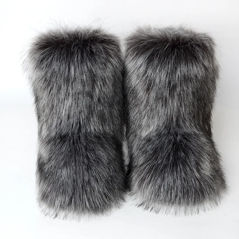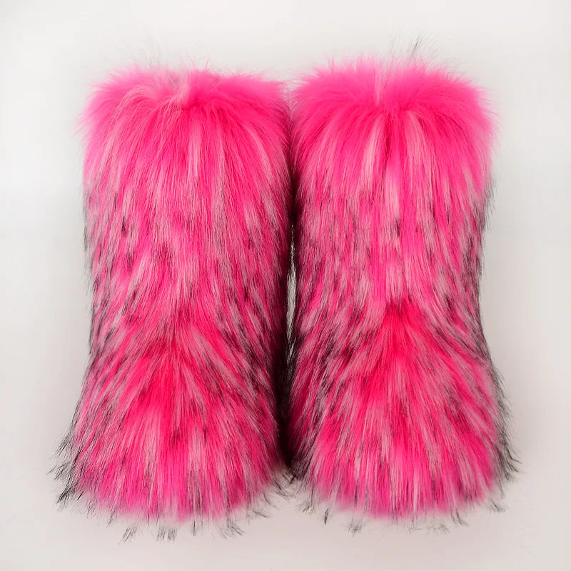 - > Botas de neve de inverno das mulheres ao ar livre luxo peludo falso pele de raposa botas mulher de pelúcia quente sapatos plataforma nova moda bottes tamanho grande 46