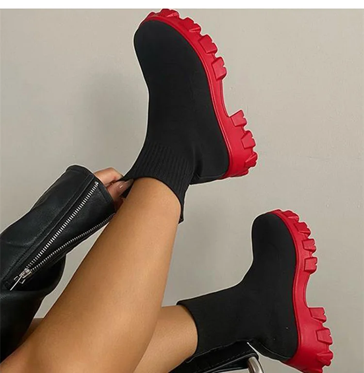 - > Botas femininas curtas de tricô plataforma botas outono inverno sapatos para mulheres botas de tornozelo saltos branco inverno botas mujer