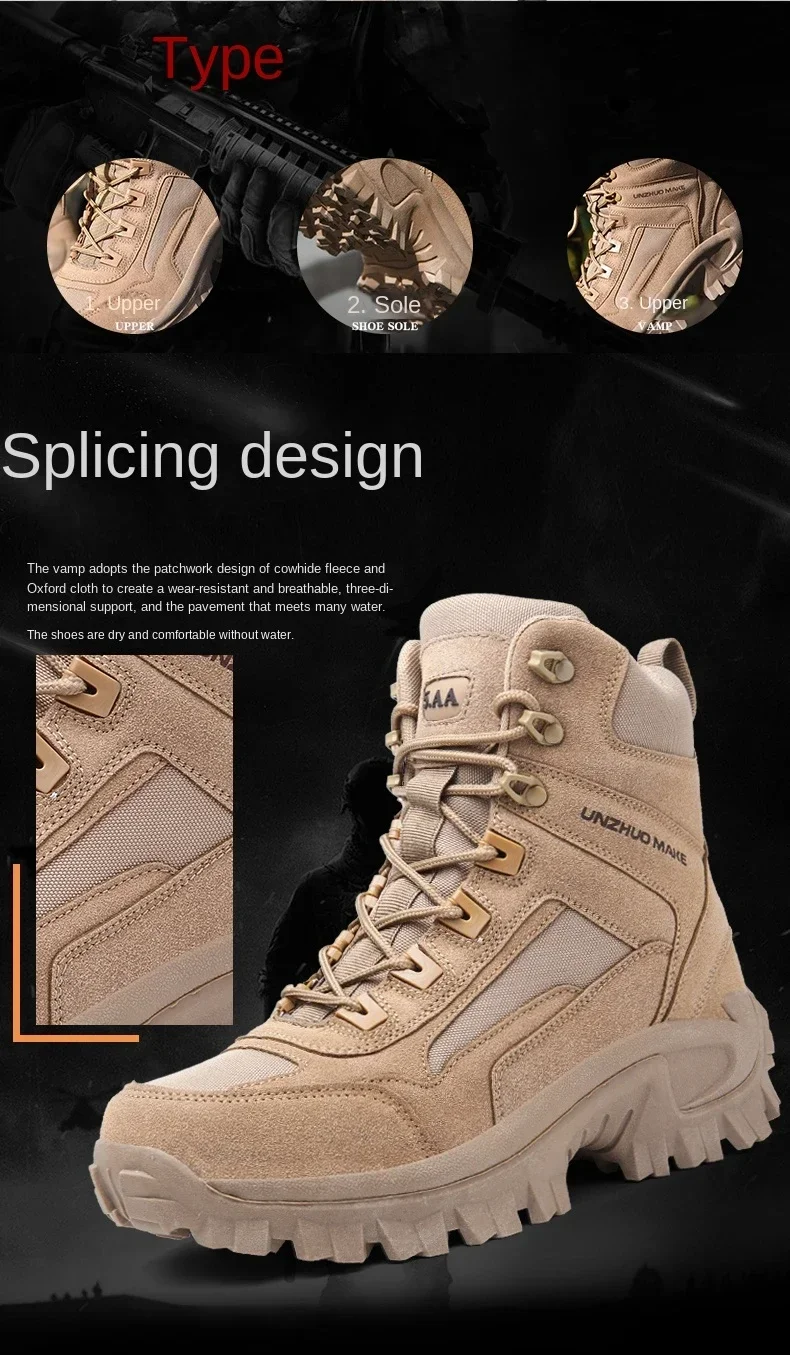- > Botas táticas impermeáveis masculinas, Combat Ankle Boot, Sapatos de segurança de trabalho, Trekking, Preto, Trekking, Tamanho grande