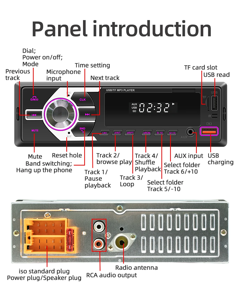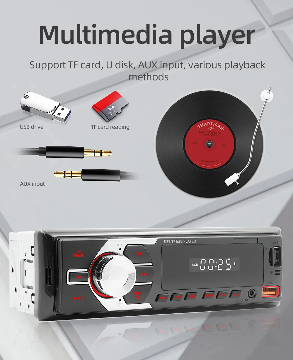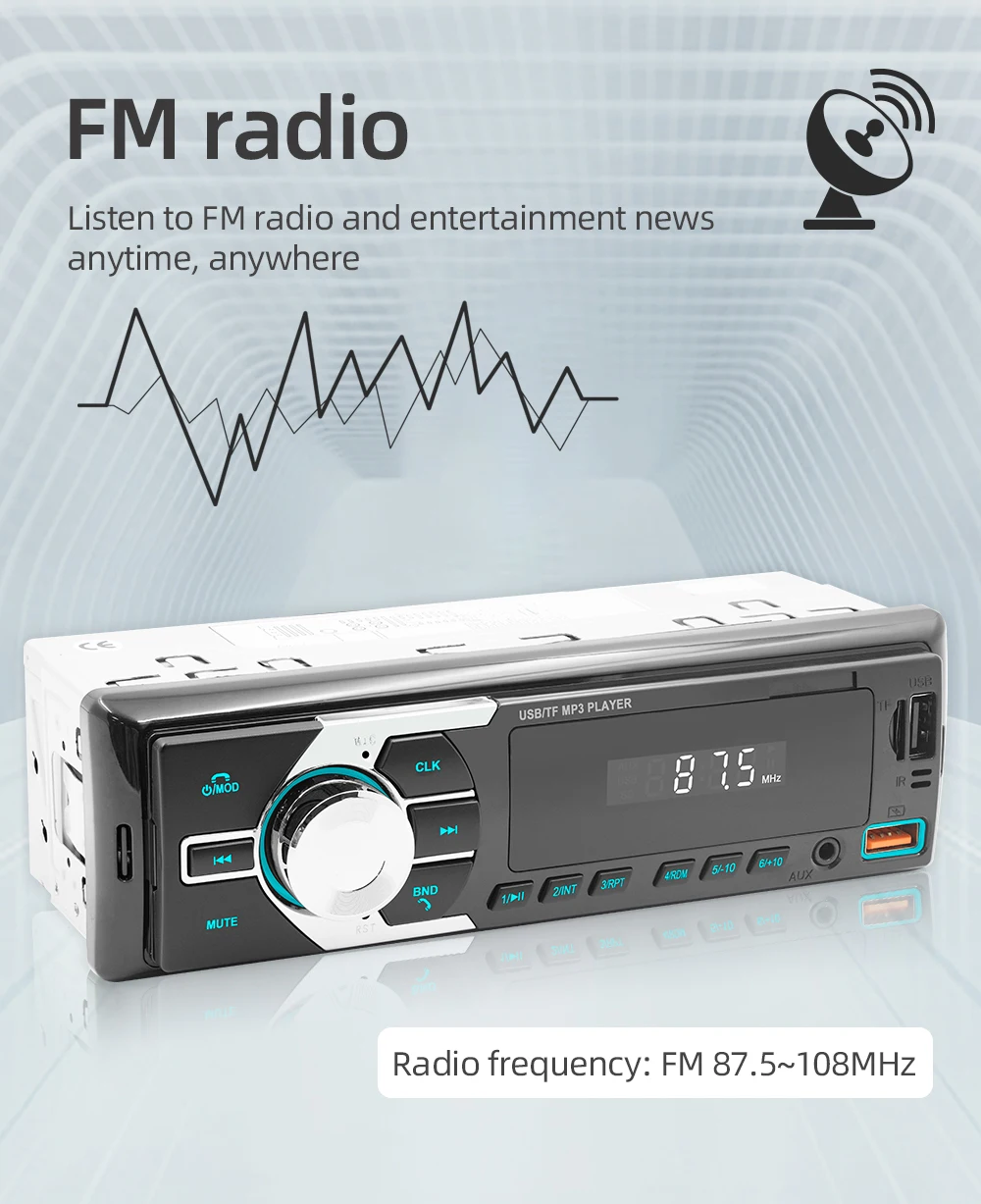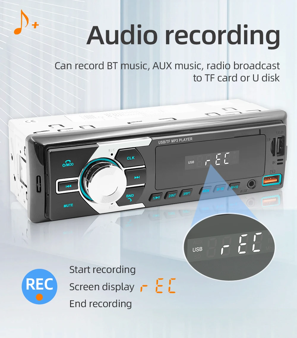 - > Bqcc 1din mp3 autoradio fm usb tf aux entrada rádio estéreo bluetooth power proteger 7 luzes coloridas duplo usb multimídia áudio do carro