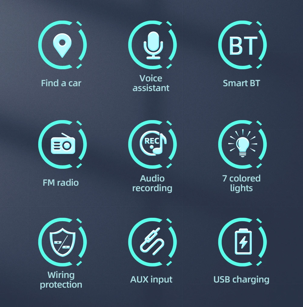 Bqcc 1din mp3 autoradio fm usb tf aux entrada rádio estéreo bluetooth power proteger 7 luzes coloridas duplo usb multimídia áudio do carro
