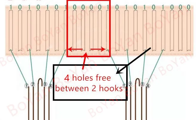 Sugerimos cortinas duplas da pista, aqui é a maneira de colocar ganchos em.