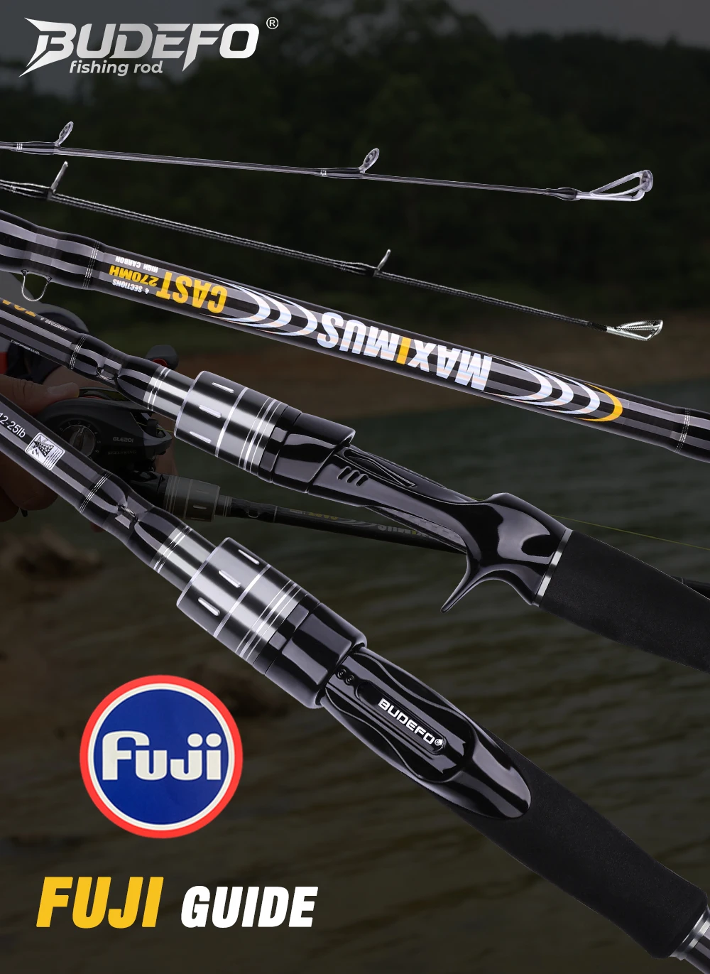 Budefo maximus isca vara de pesca 1.8m 2.4m 3.0m30t carbono fiação arremesso fuji guia viagem isca vara 3-50g ml/m/mh