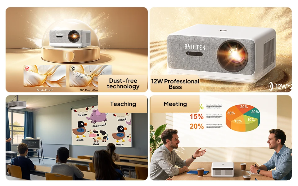 - > BYINTEK LOVE U14 Full HD 1080P Projetor 4K Inteligente Bluetooth WiFi 6 Suportado 1250ANSI Foco Automático Projetores de Cinema Home Theater