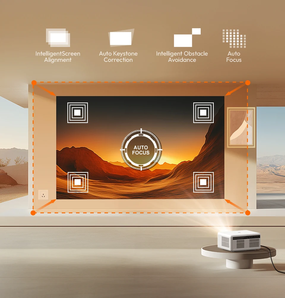 Entrada automática da tela, 3 segundos de ajuste automático do tamanho da tela de projeção