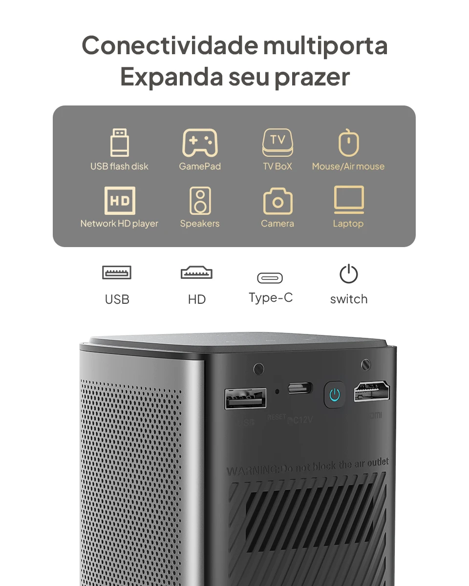 A versão inteligente suporta keystone 6D (correção horizontal, vertical e de canto são suportadas)