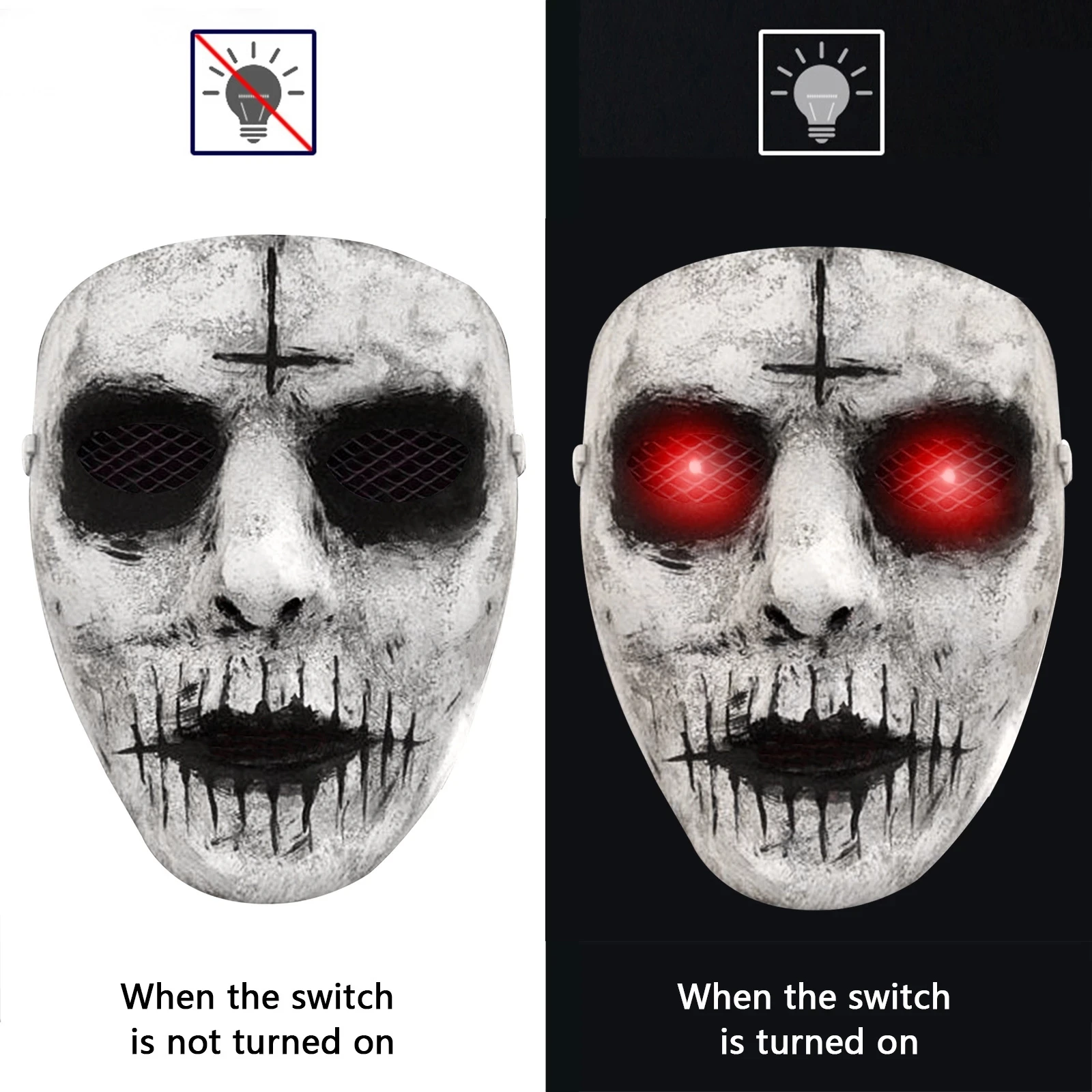 Cafele demônio assassino máscara led vermelho iluminado olhos cosplay assustador assustador halloween máscara de terror masquerade traje festa