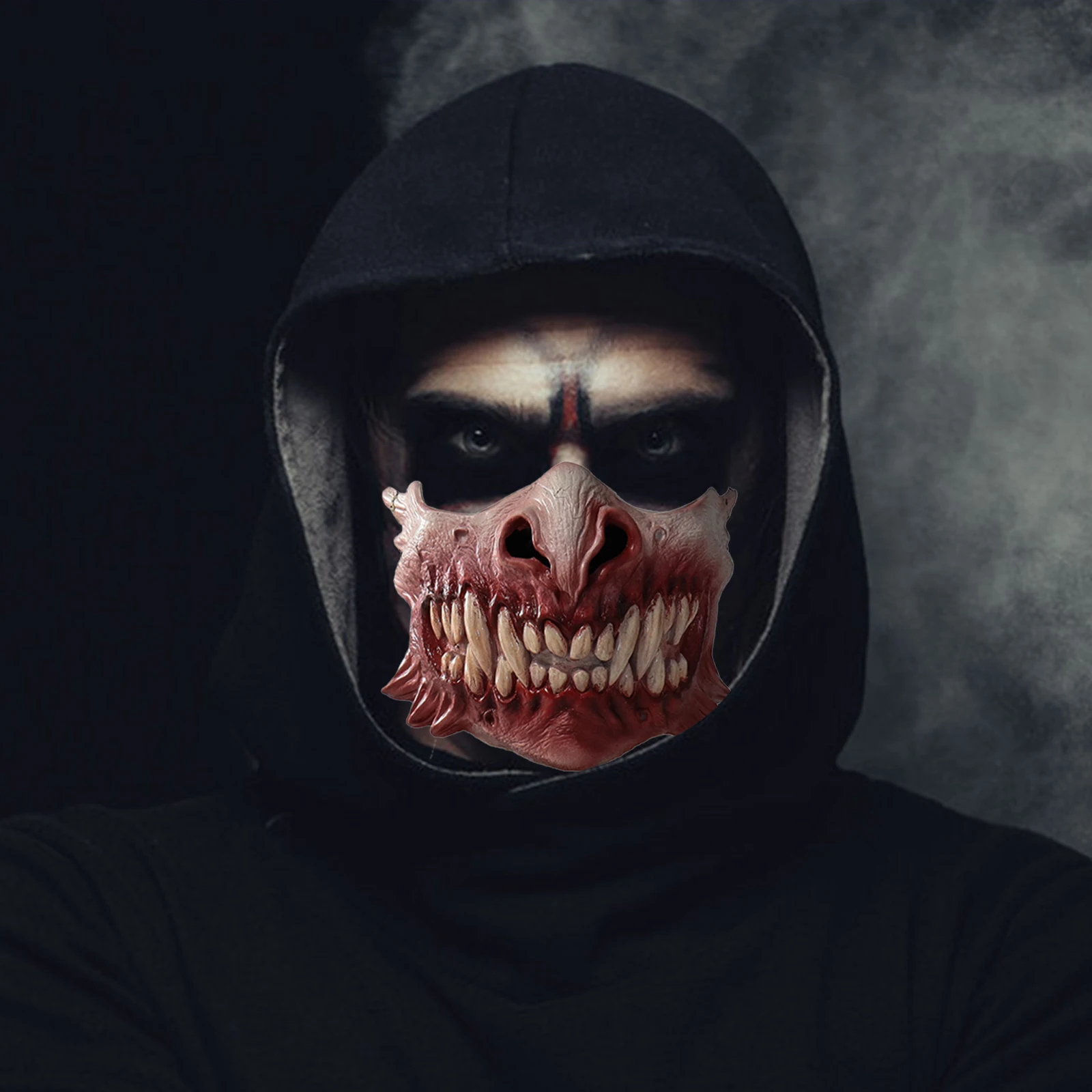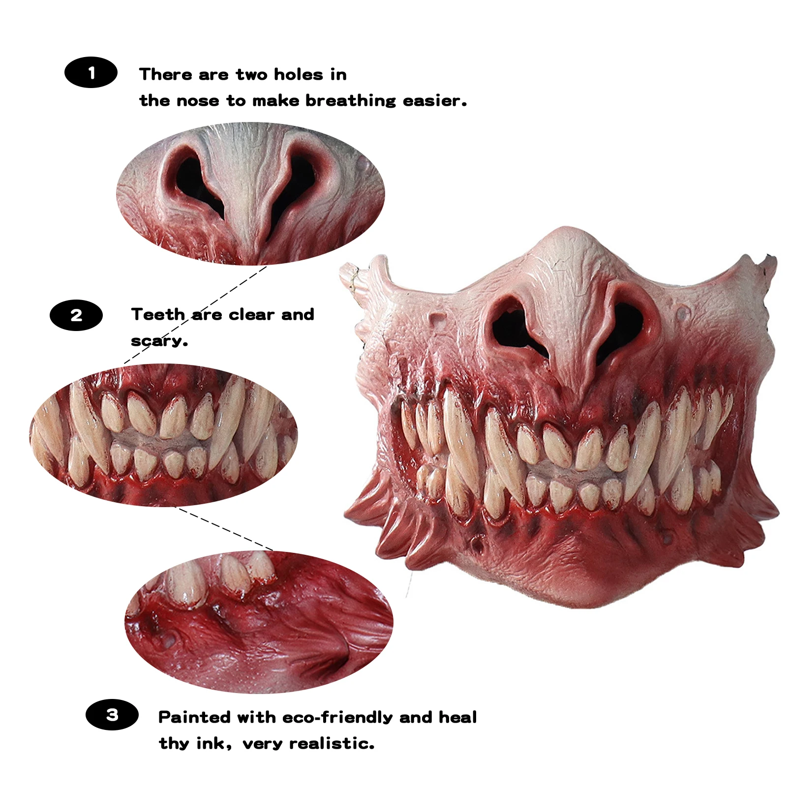 Cafele horror zumbi dentes grandes metade rosto máscara de látex anime cosplay traje halloween máscaras festa adereçosMaterial: látex