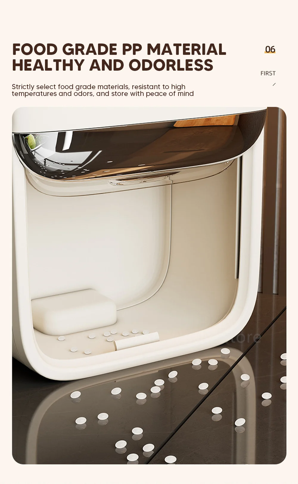 Esta caixa de armazenamento é feita de material PP de qualidade alimentar, não tóxico e inodoro, seguro e confiável, garantindo a higiene e saúde do arroz.