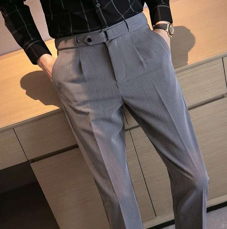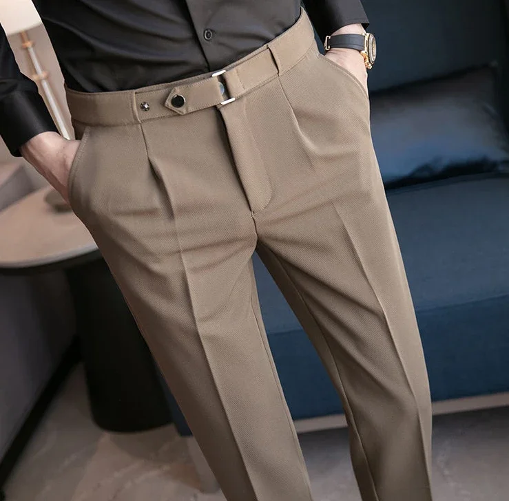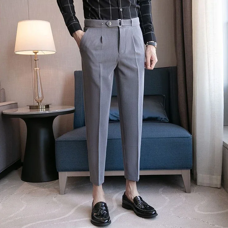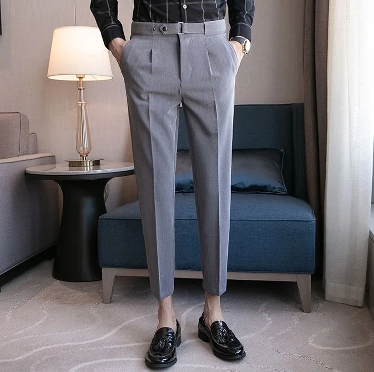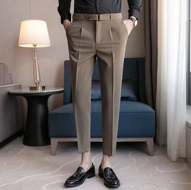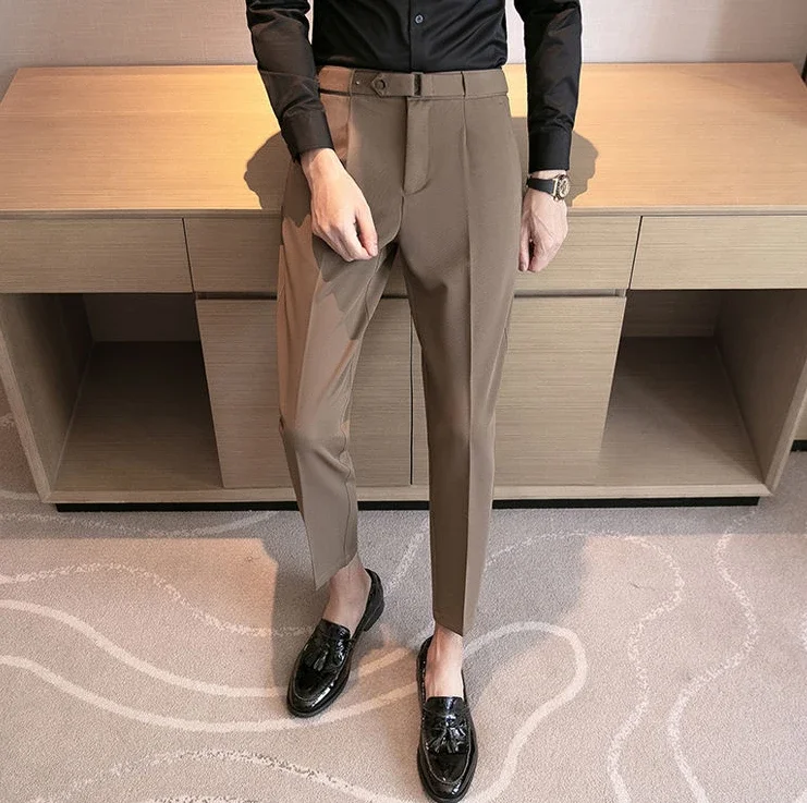 Calça de negócios justa masculina recortada, calça reta elástica, terno masculino de alfaiataria social, estiramento formal tressed, verão, 9 calças recortadas