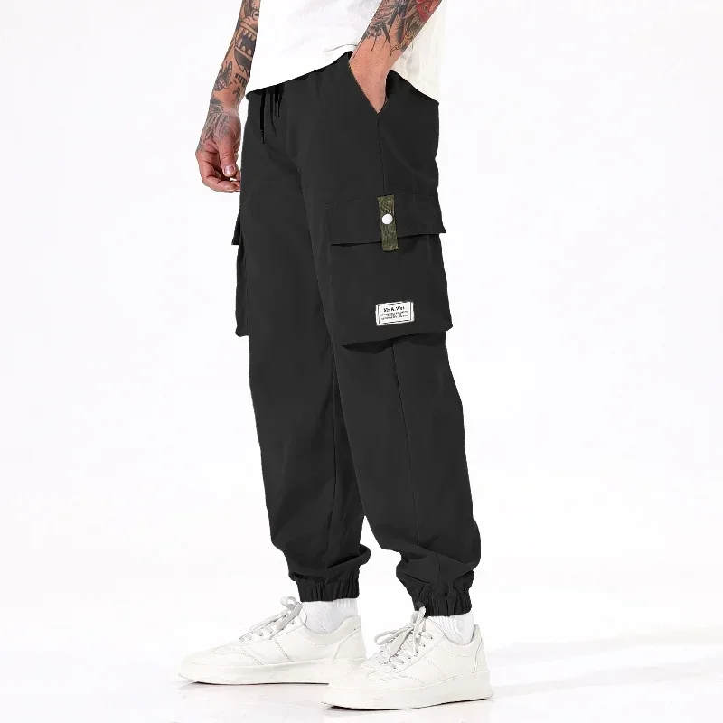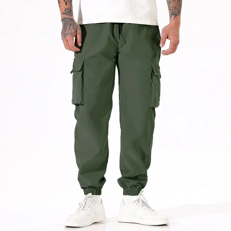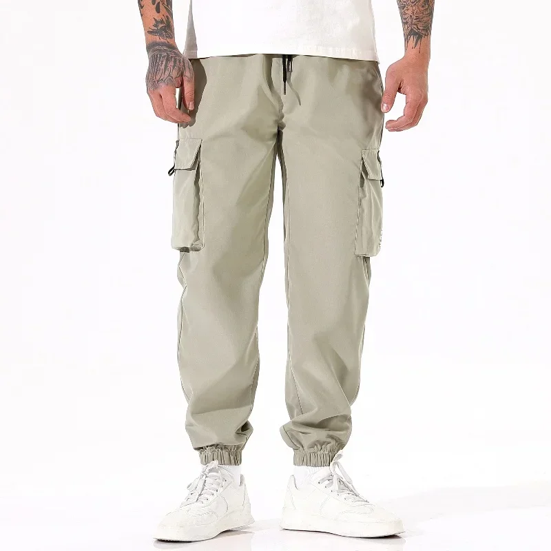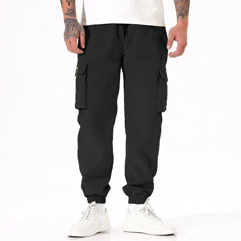 Calça masculina casual de pesca ao ar livre, à prova de vento, respirável, multi pacote, solta, confortável, para todas as estações, casual, versátil, esportiva