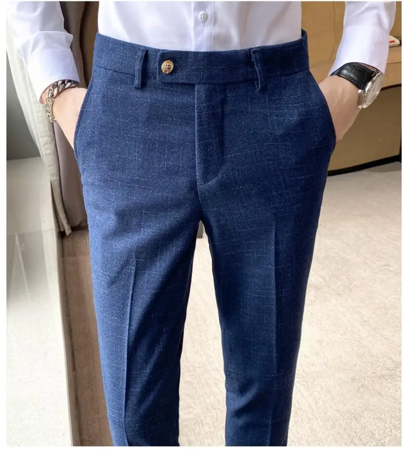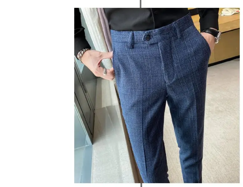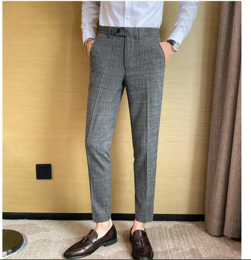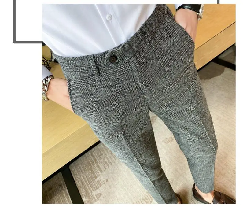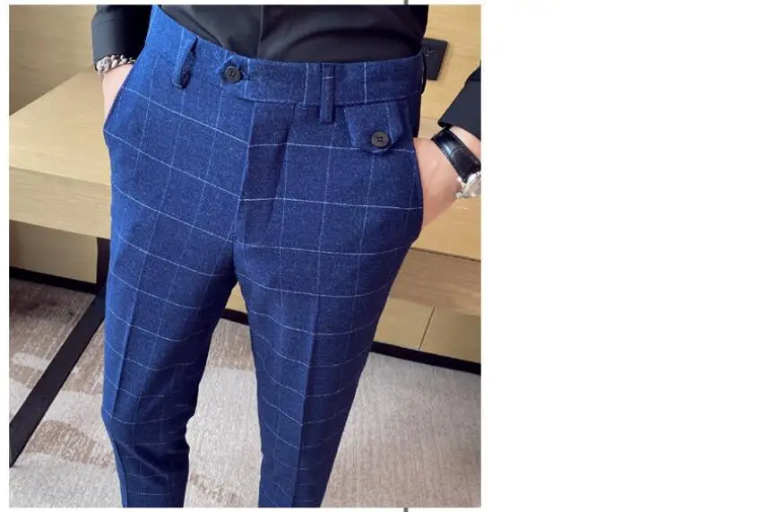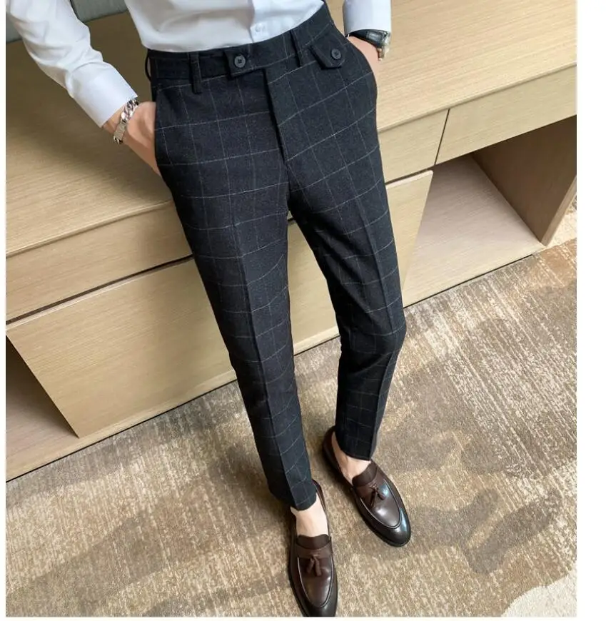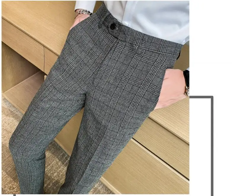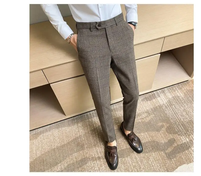 Calça xadrez listrada masculina, calça justa, social, de negócios, casamento, noivo, nova moda, alta qualidade, 2024