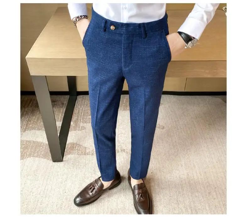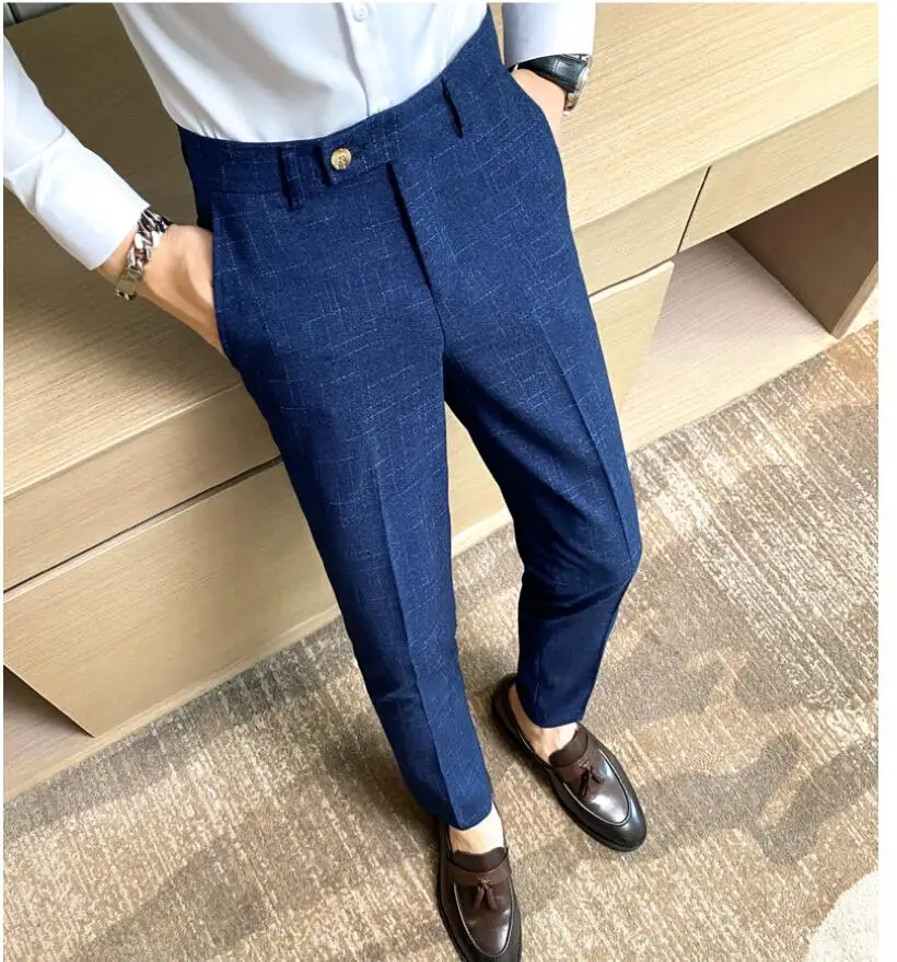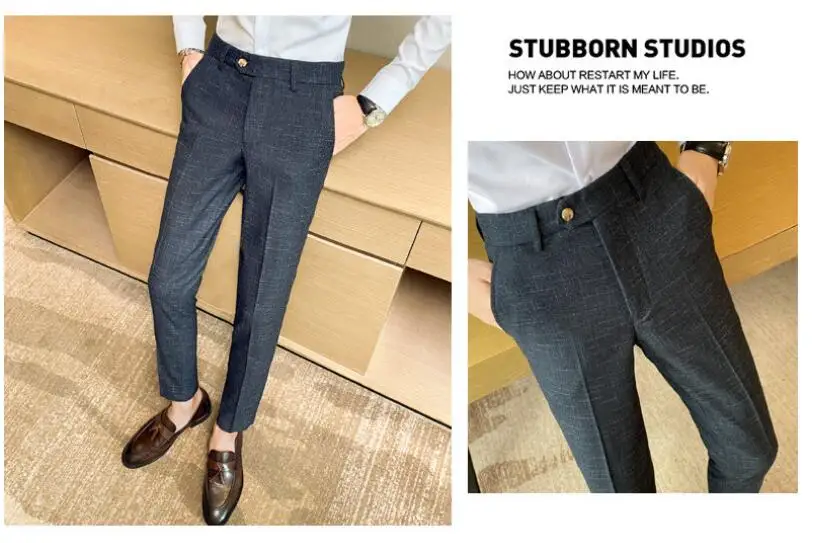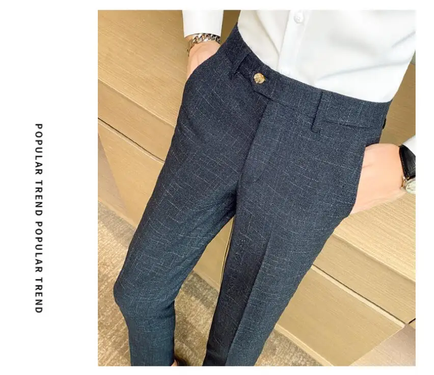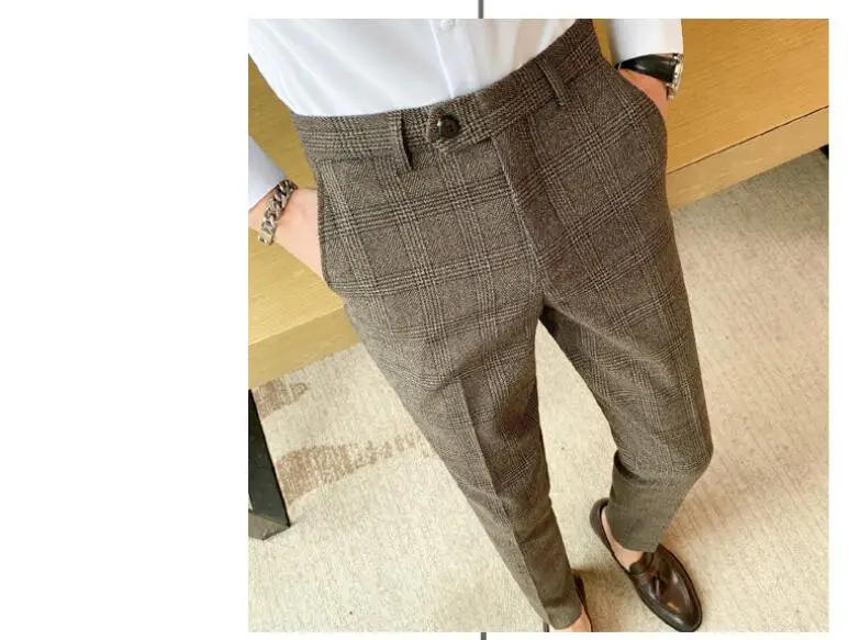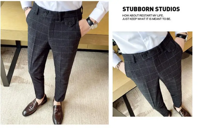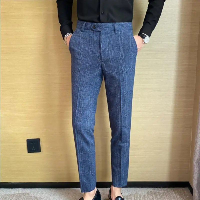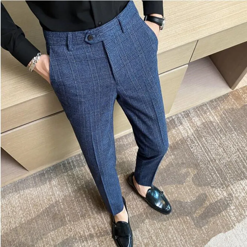 Calça xadrez listrada masculina, calça justa, social, de negócios, casamento, noivo, nova moda, alta qualidade, 2024