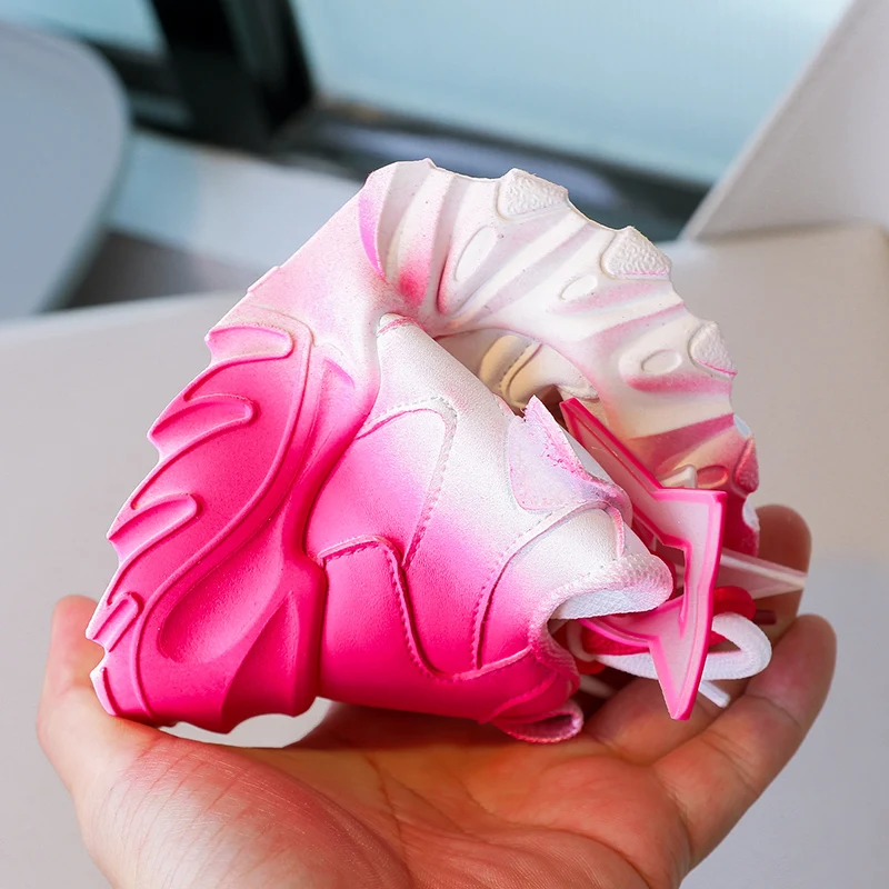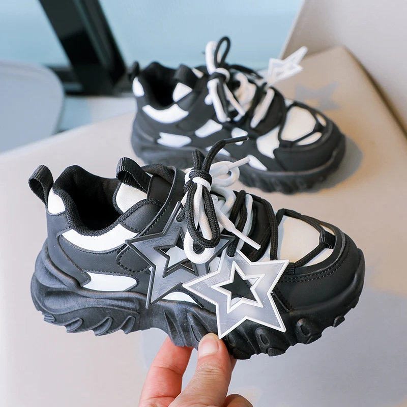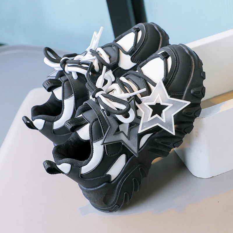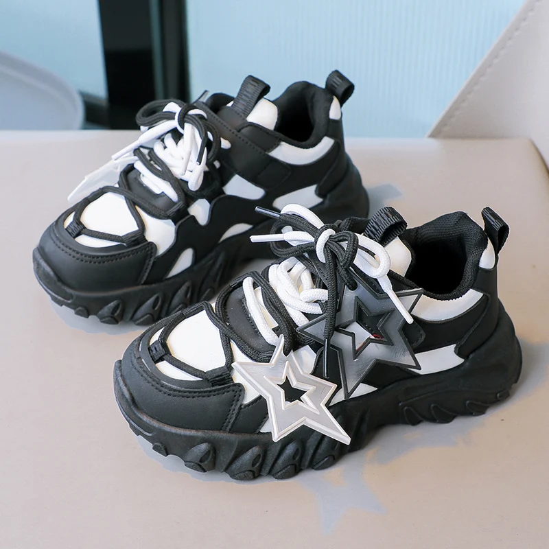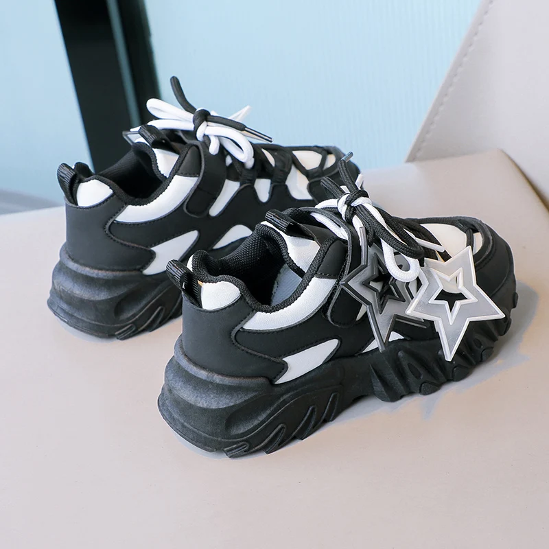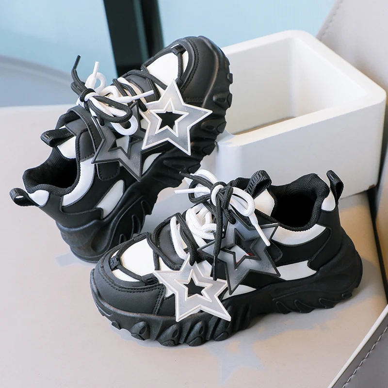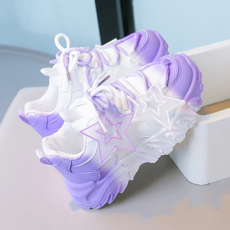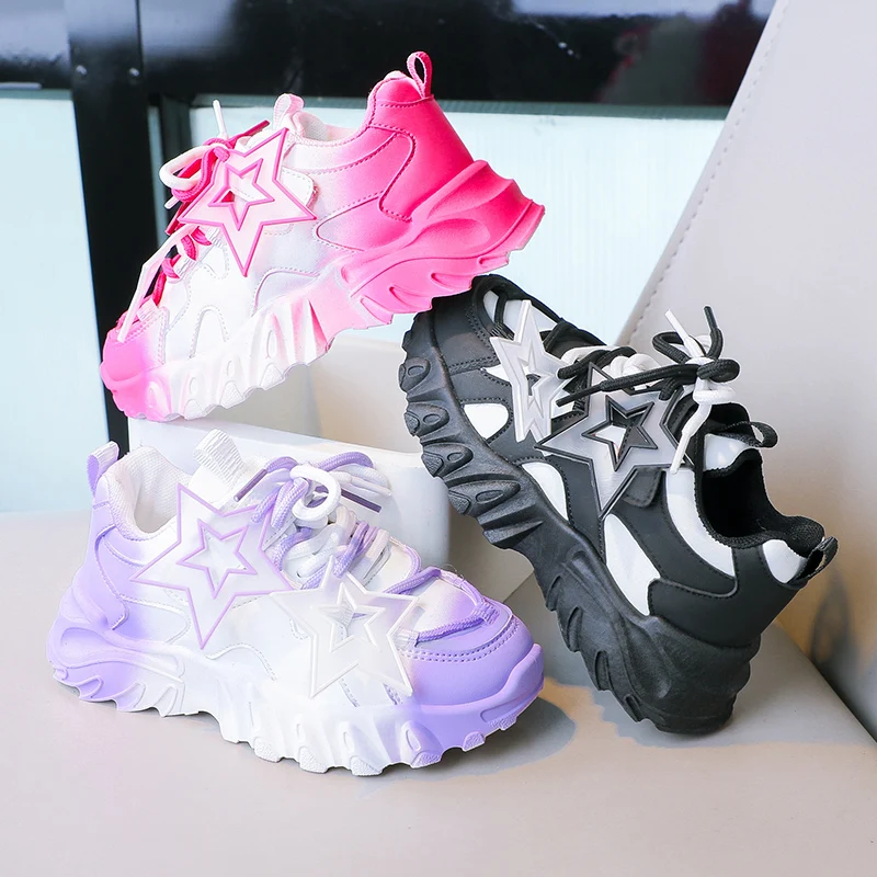 Calçados esportivos infantis respiráveis de cor gradiente, tênis grossos respiráveis para meninas e meninos com decoração de estrela