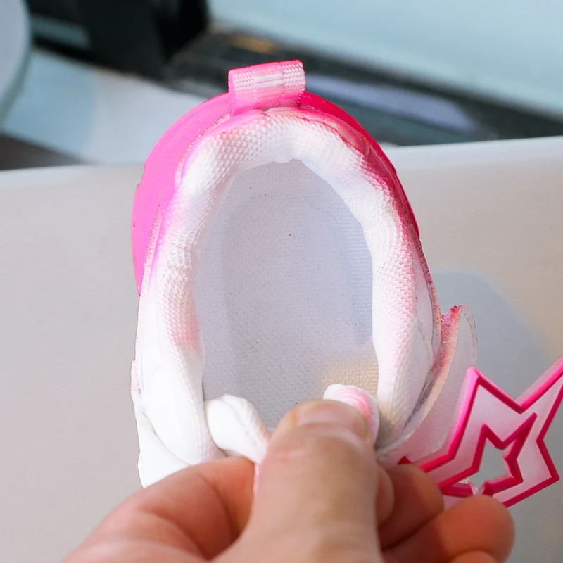 - > Calçados esportivos infantis respiráveis de cor gradiente, tênis grossos respiráveis para meninas e meninos com decoração de estrela