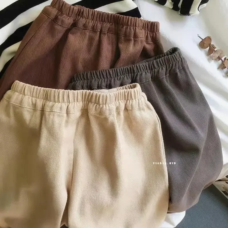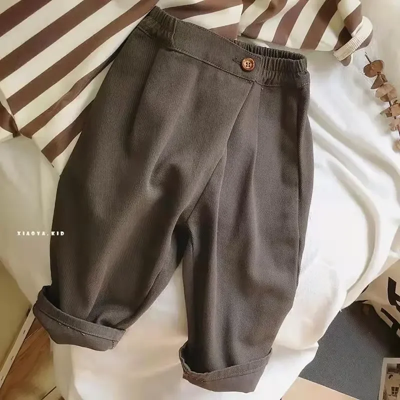 - > Calças casuais coreanas das crianças para bebês primavera 2022 novos meninos e meninas cor sólida solta encaixe harlan calças compridas
