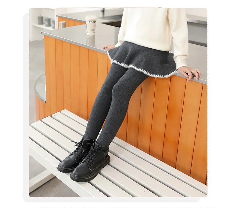- > Calças de inverno para meninas de 3 a 10 anos, leggings de lã para crianças, grossas e quentes, duas peças falsas, culotes, calças de saia para crianças