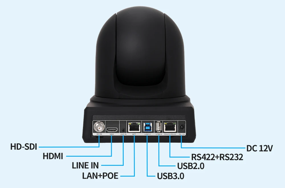 A câmera possui um conjunto completo de interfaces, permitindo saída simultânea via HDMI, 3G-SDI, USB3.0 e IP.Ele pode fornecer vídeos com resolução máxima de 4K@60fps ou 1080p@60fps, ao mesmo tempo que suporta múltiplas tecnologias avançadas como NDI, PoE, RTSP, RTMP e SRT, atendendo a vários requisitos profissionais de produção e transmissão de vídeo.