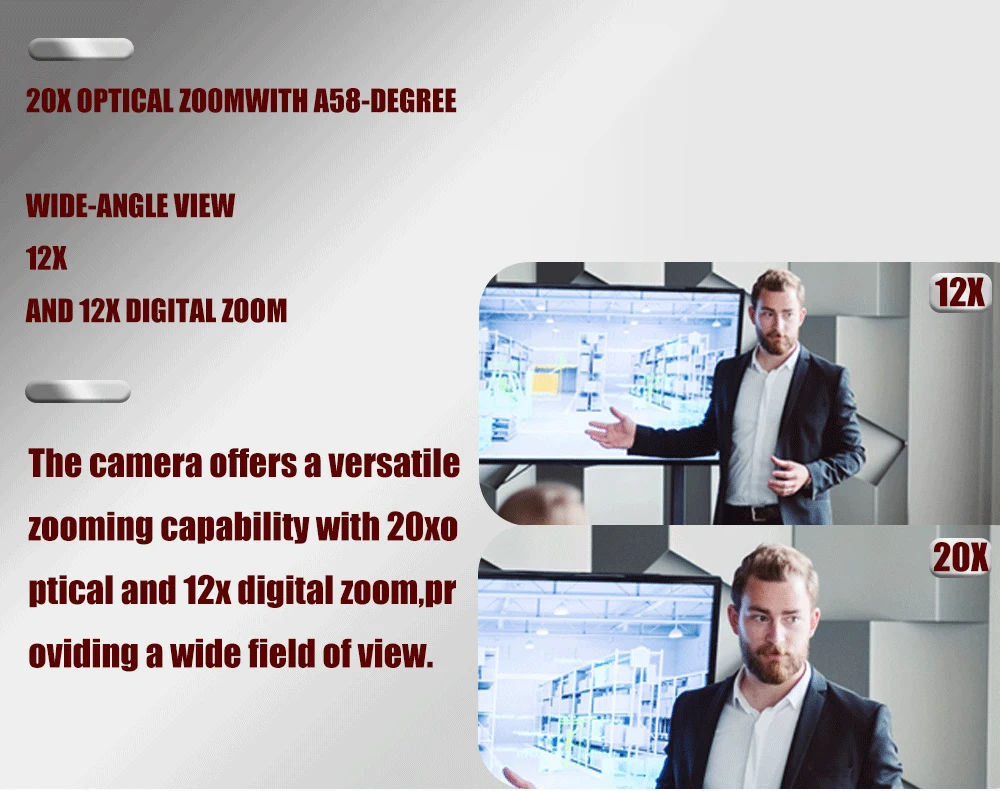 Esta câmera 4K de ultra-alta definição pan-tilt-zoom (PTZ) foi projetada para atender a diversas necessidades de comunicação visual profissional e pessoal.Ele possui um sensor de imagem CMOS de alta qualidade de 1/ polegada, capaz de gerar impressionantes vídeos de ultra-alta definição 4K em uma proporção de 16:9.A câmera não apenas fornece visuais de alta definição rapidamente, mas também garante operações de panorâmica/inclinação silenciosas e suaves, minimizando o tremor mesmo ao capturar objetos em uma ampla faixa.Ele encontra amplas aplicações em cenários como videochamadas, videoconferências, cursos on-line, transmissões ao vivo na igreja, palestras universitárias, telemedicina, treinamento remoto, entrevistas remotas, educação à distância e streaming de eventos ao vivo.