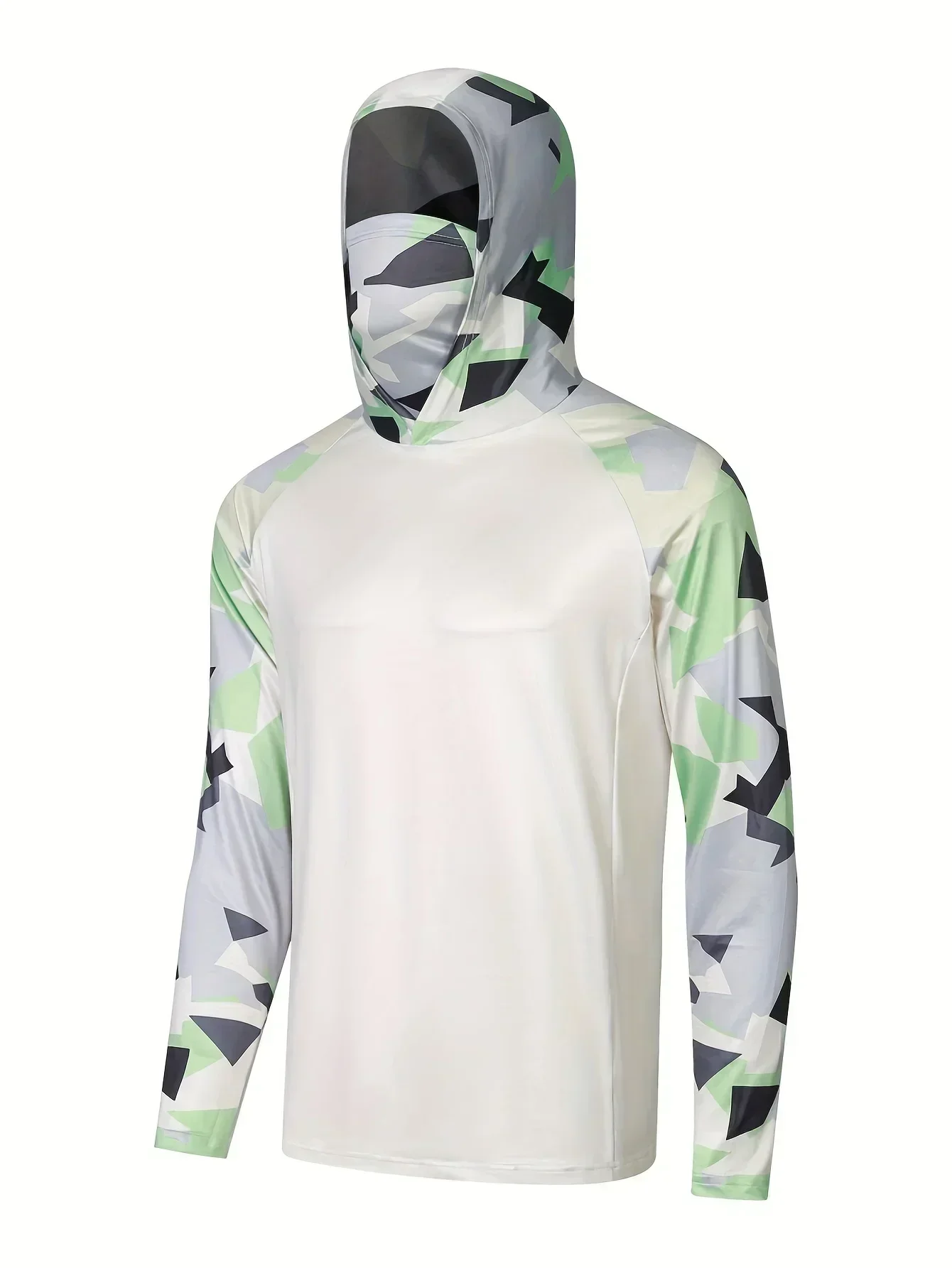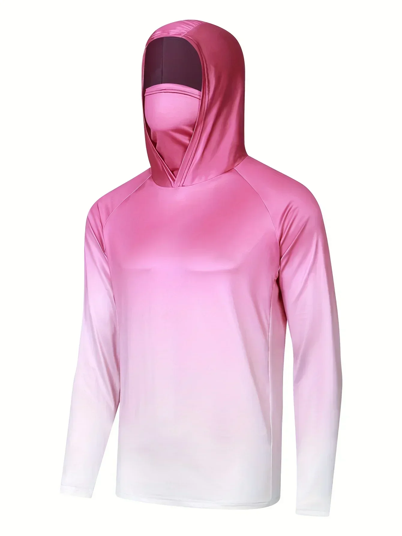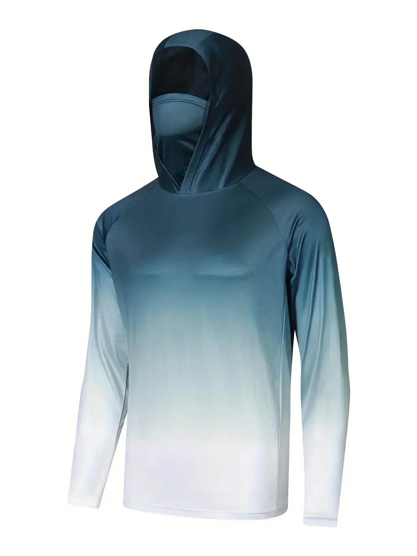 Camisa de pesca com capuz respirável masculina, top absorvente de umidade com polaina de pescoço UV e máscara facial integrada para atividades ao ar livre
