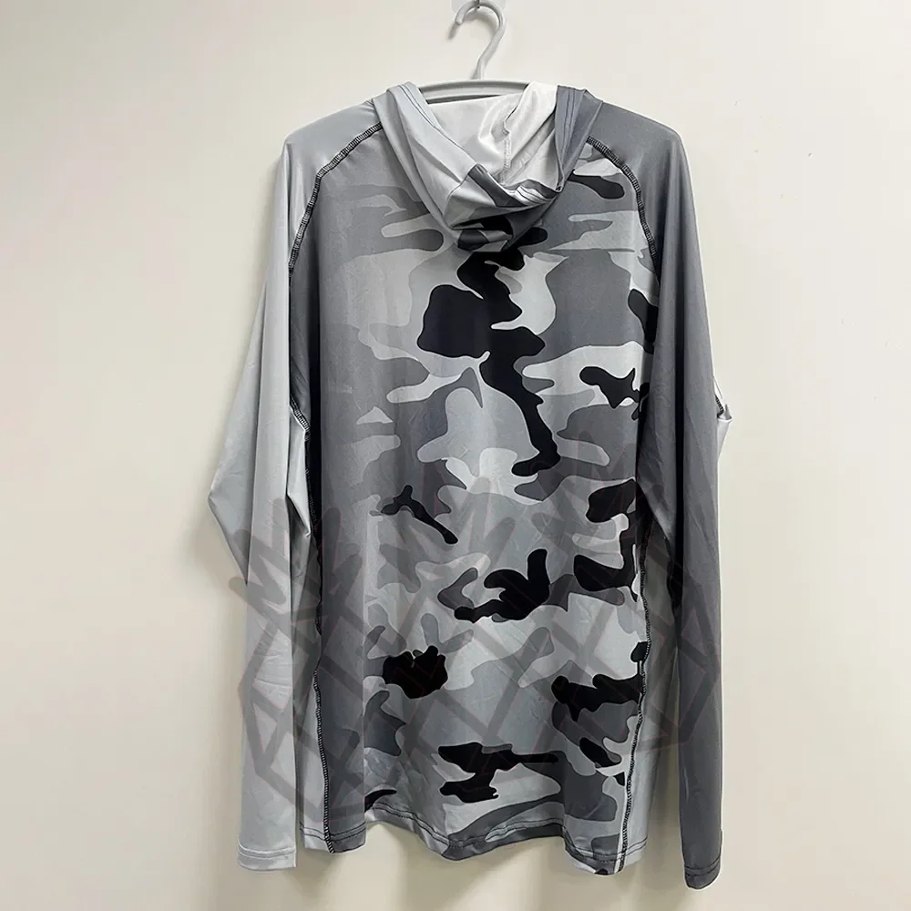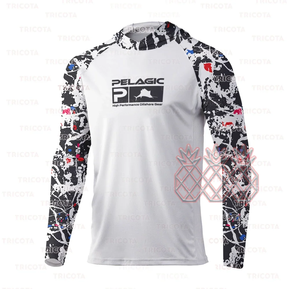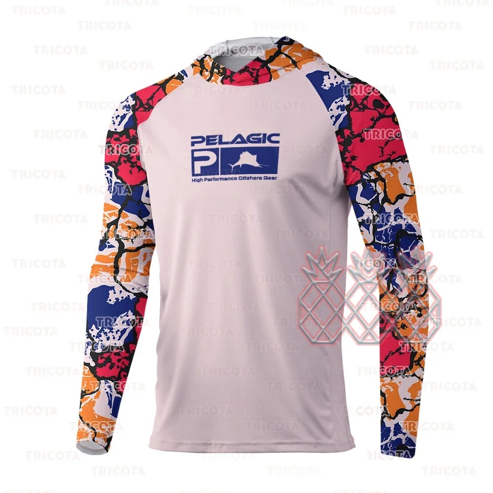 Camisa de pesca com capuz vermelho máscara roupas de pesca verão manga longa upf 50 secagem rápida respirável camisa proteção solar curto camiseta