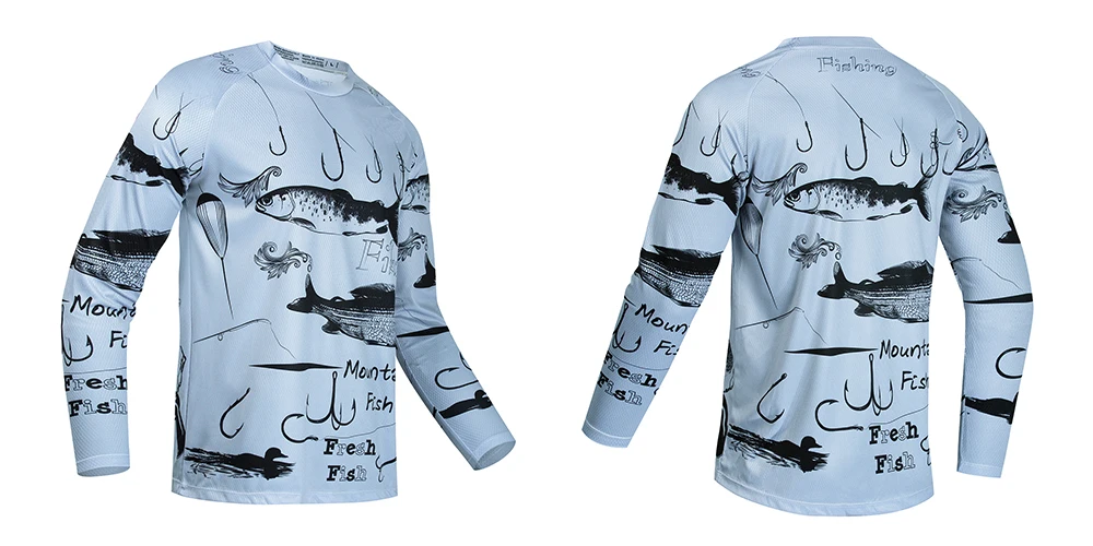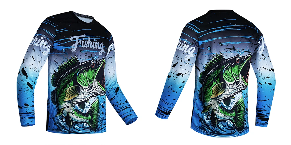 - > Camisa de pesca masculina manga longa, roupa com protetor solar ao ar livre, camisas casuais estampadas em peixe anti-UV, verão 2024