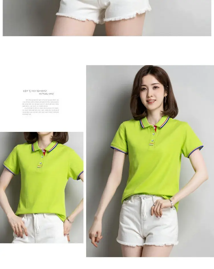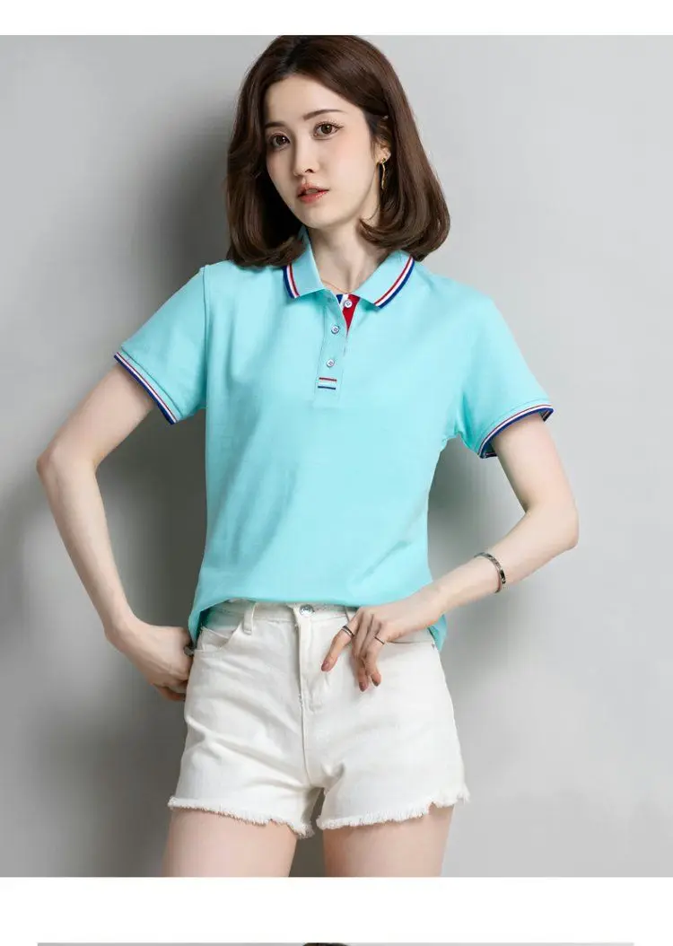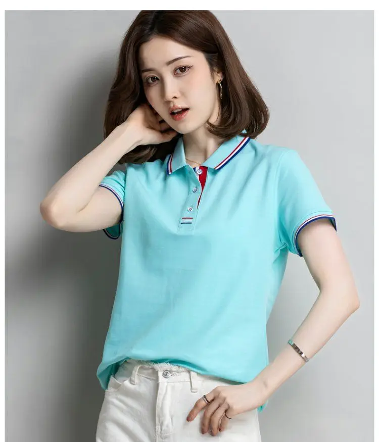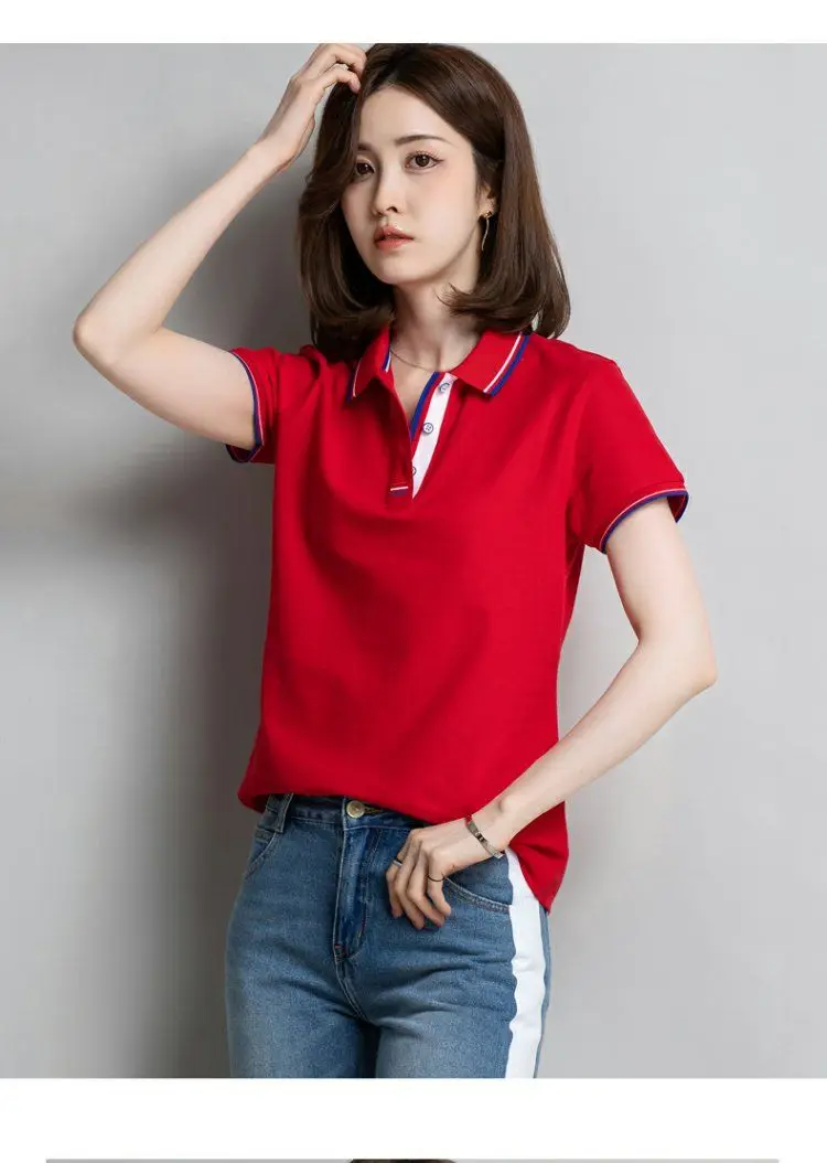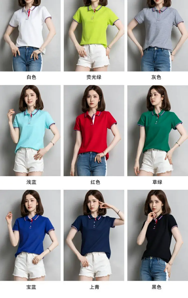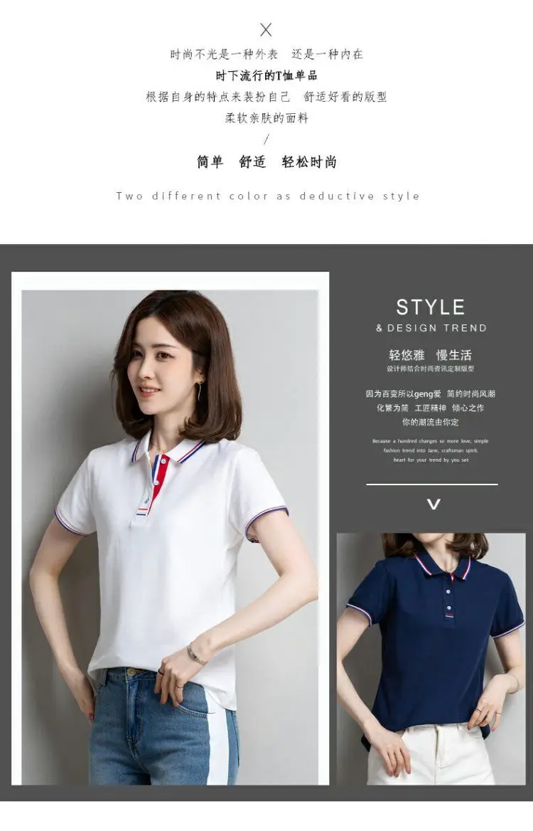 Camisa polo feminina de algodão solto, manga curta, blusa esportiva casual com lapela, camisa de negócios preto e branco, verão feminino