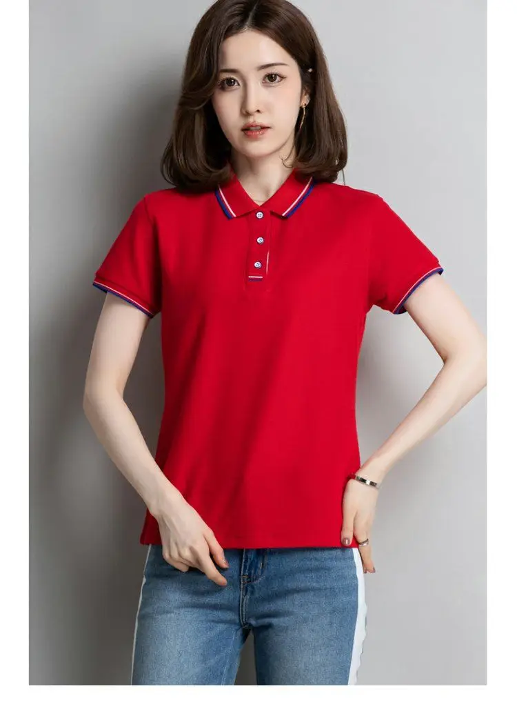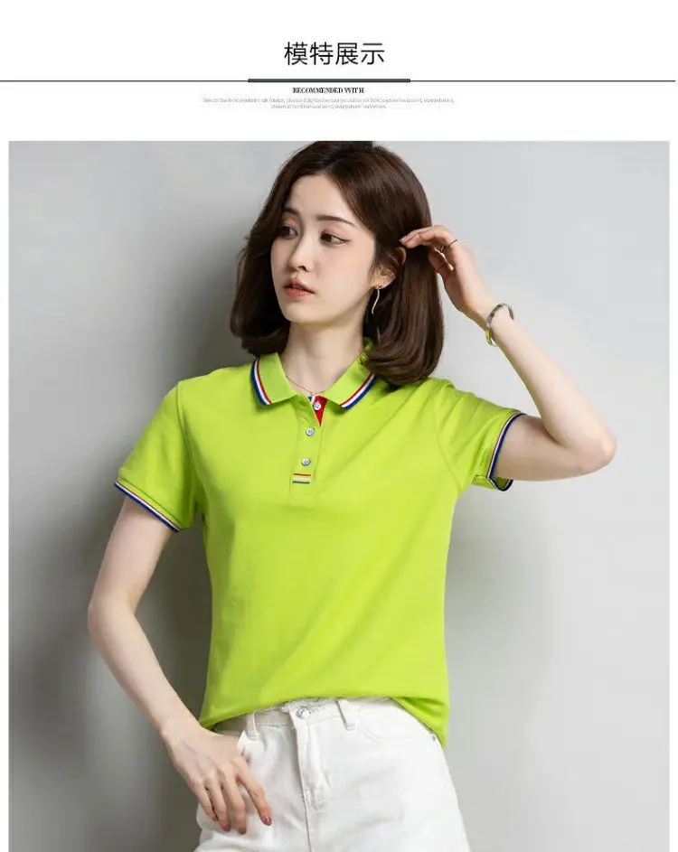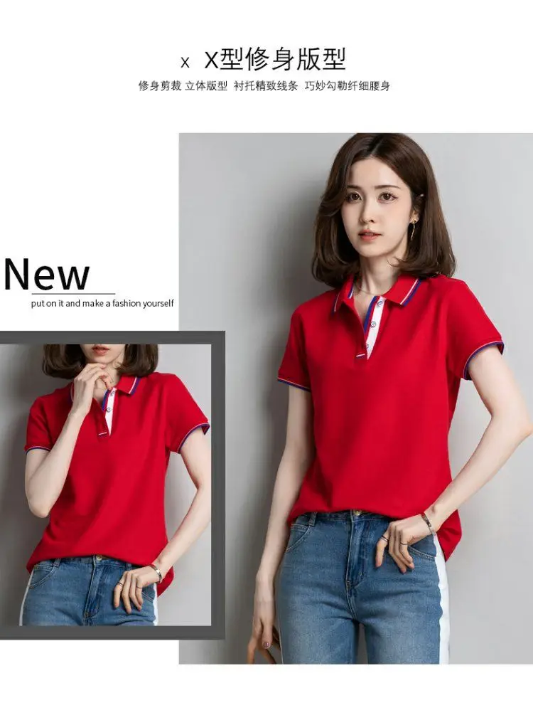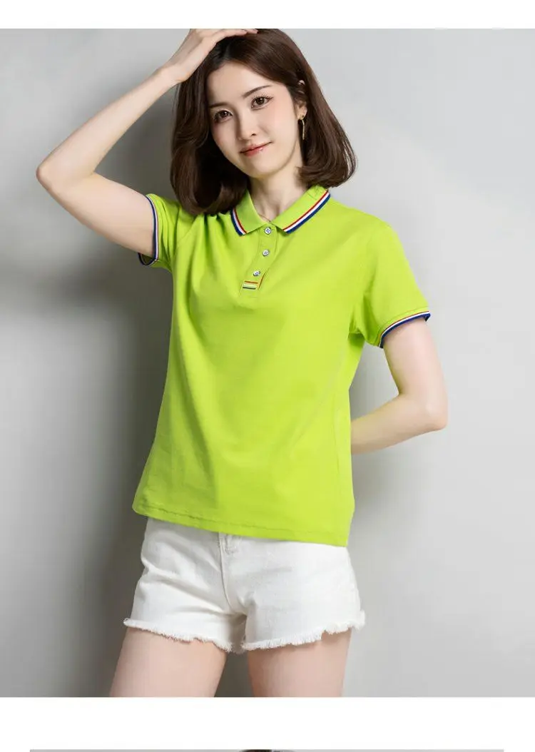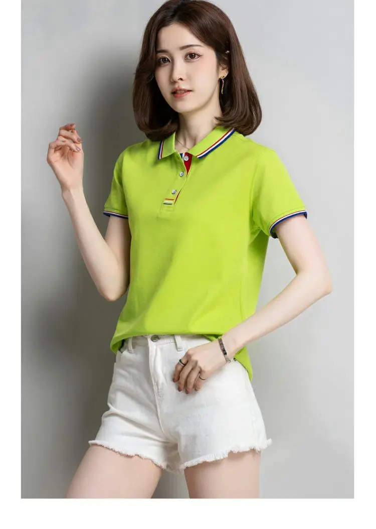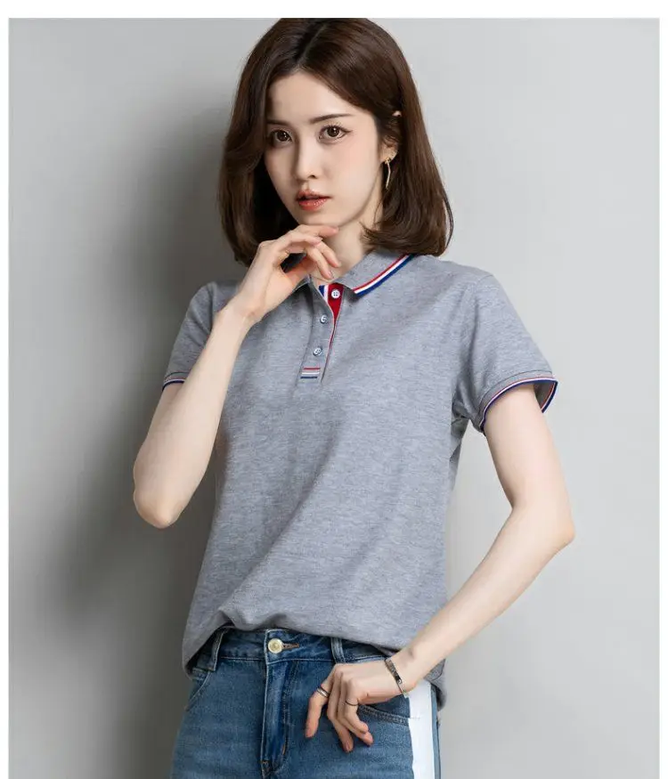 Camisa polo feminina de algodão solto, manga curta, blusa esportiva casual com lapela, camisa de negócios preto e branco, verão feminino