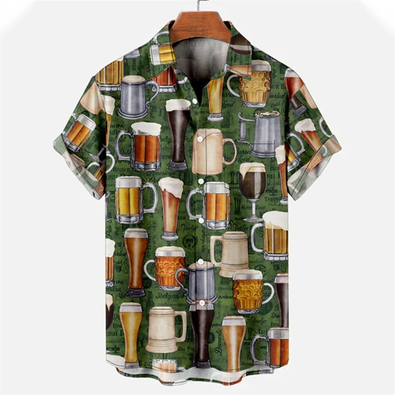 Camisa Retro de Cerveja Masculina Estampada 3D, Padrão para Beber Natal, Engraçado Street Top, Casual Manga Curta, Blusa de Botão, Roupas