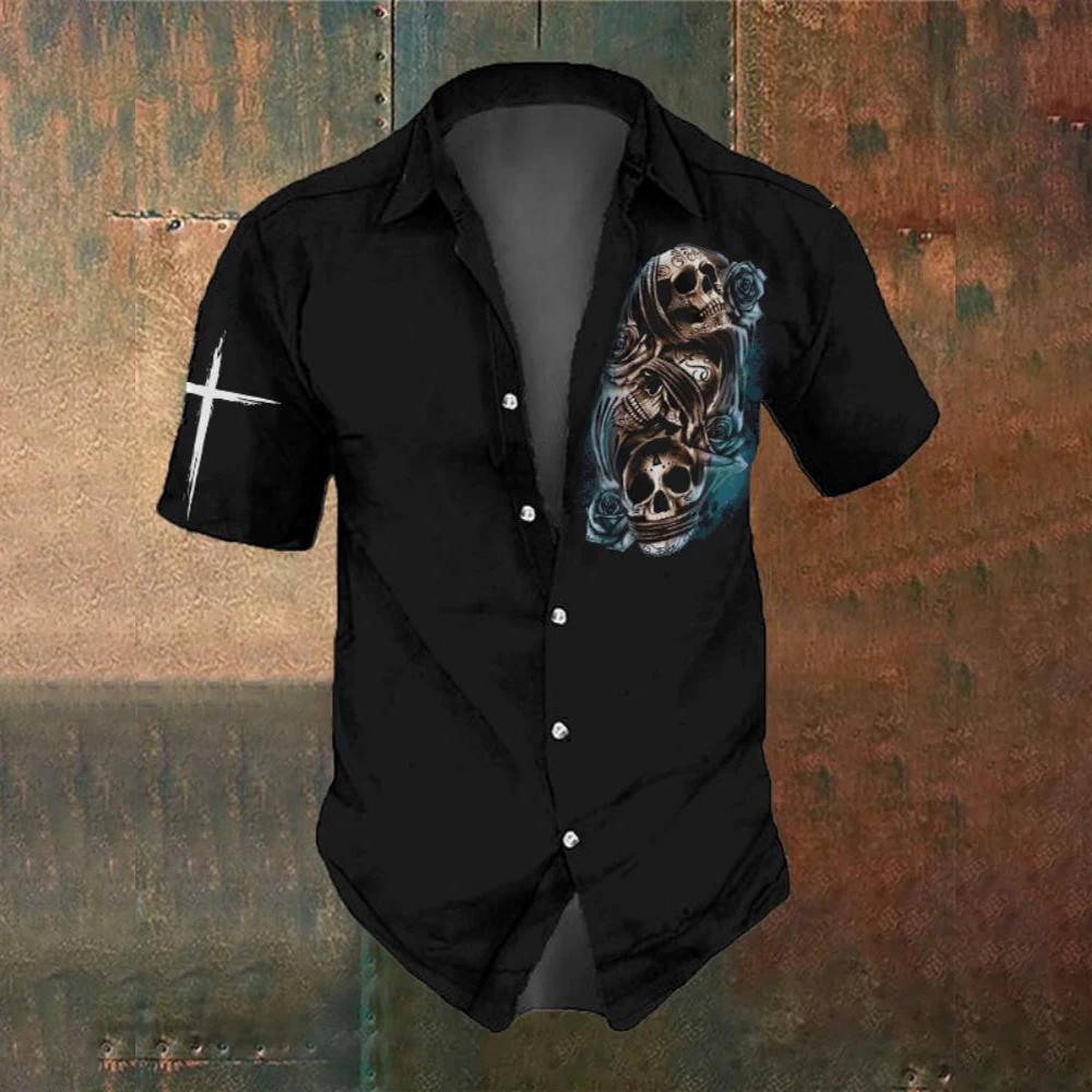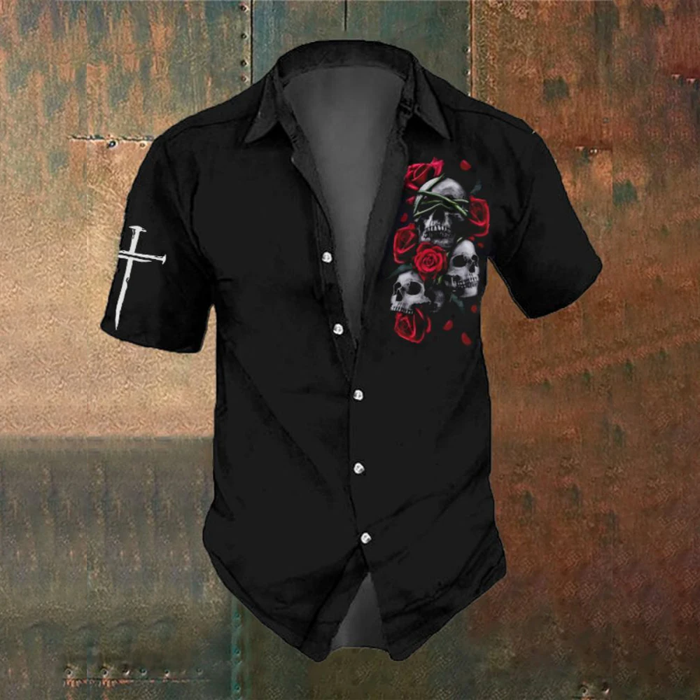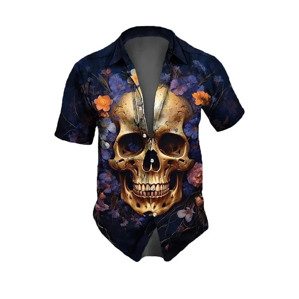 - > Camisa retrô masculina com estampa caveira rosa, roupa de festa, manga curta, casual, na moda, extragrande, tamanho S-5XL, moda, verão