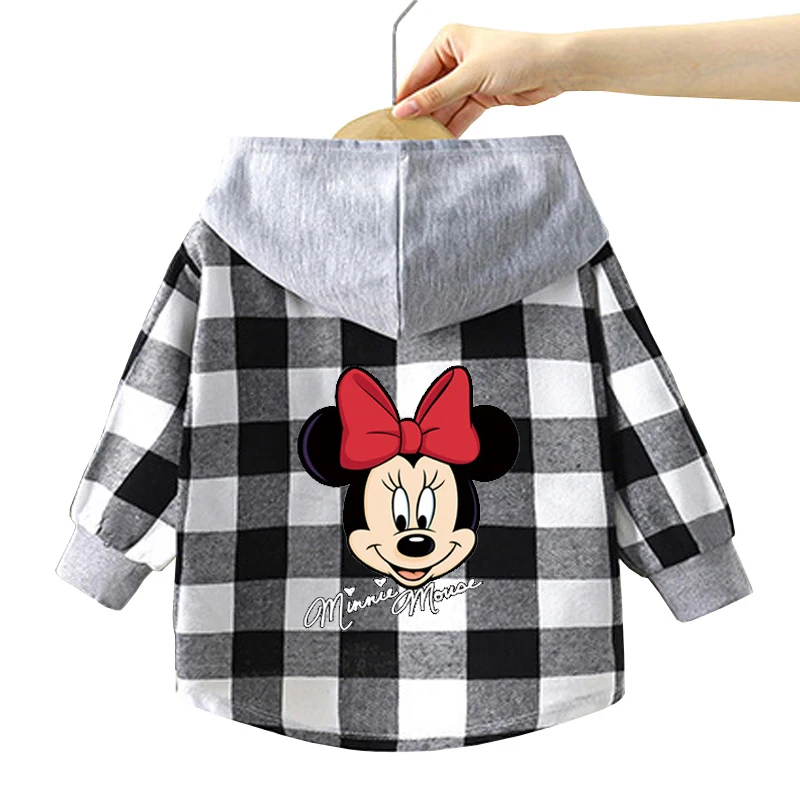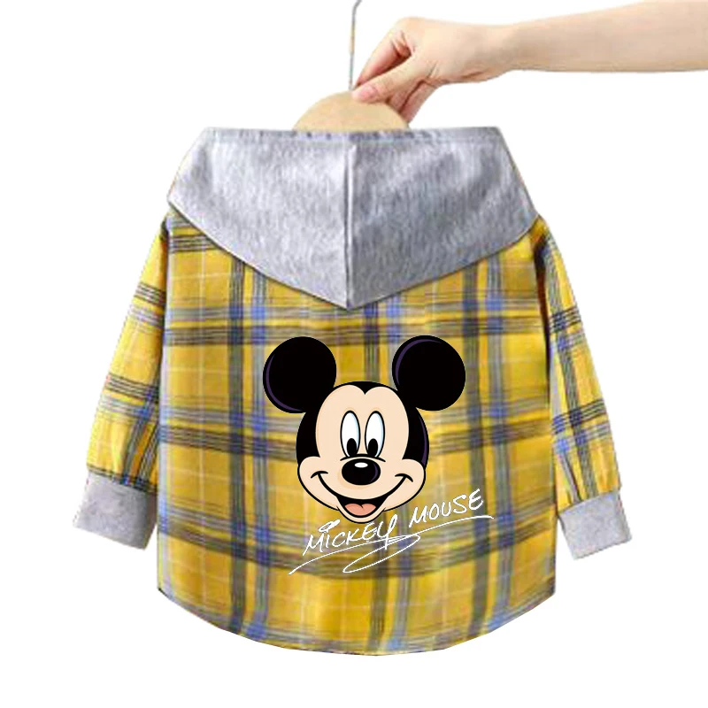 Camisas com capuz das crianças do bebê meninos mickey mouse camisas xadrez casaco para primavera outono meninas dos desenhos animados jaqueta roupas de fundo