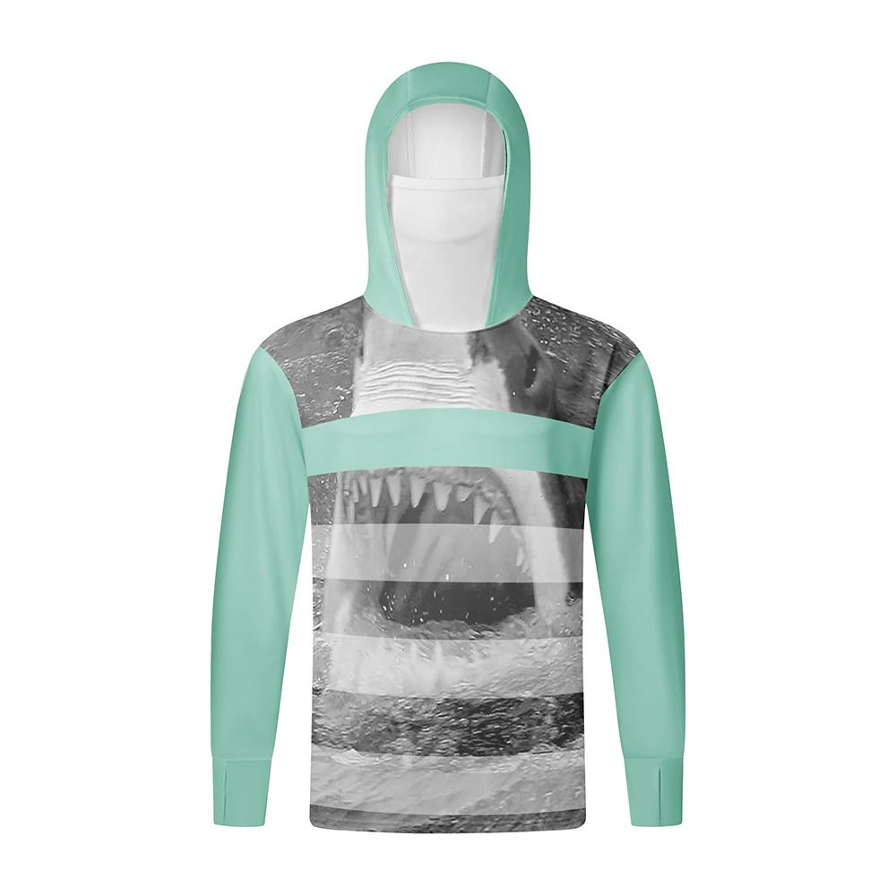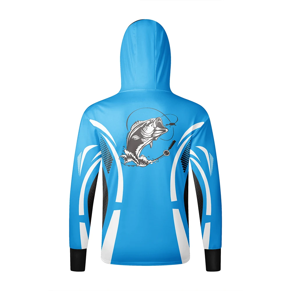 Camisas de pesca com capuz de manga comprida UPF 50+ Camisetas Tops Camisa de proteção solar Máscara facial masculina Roupas de pesca