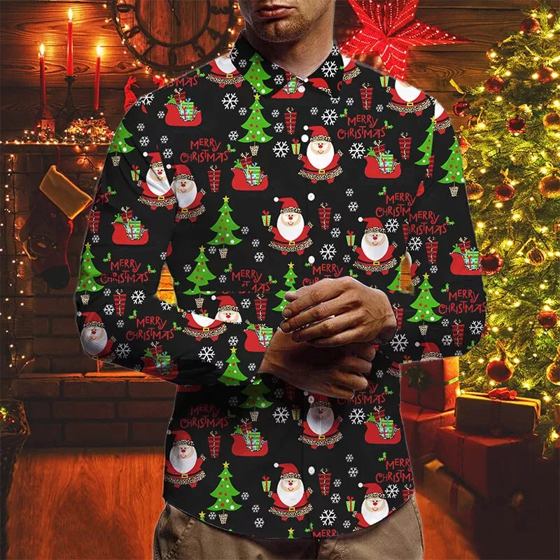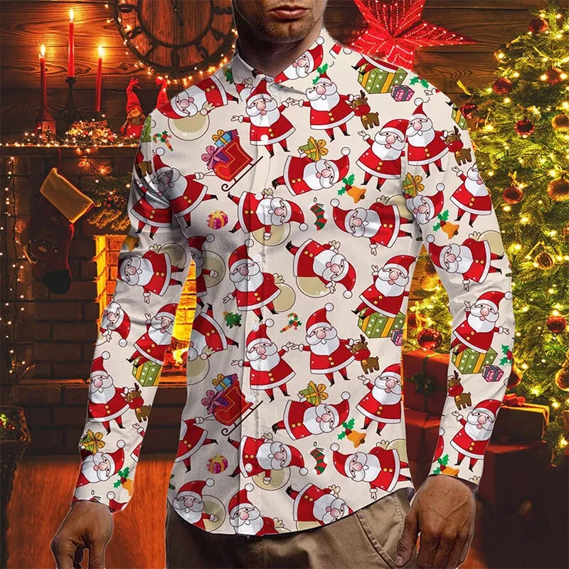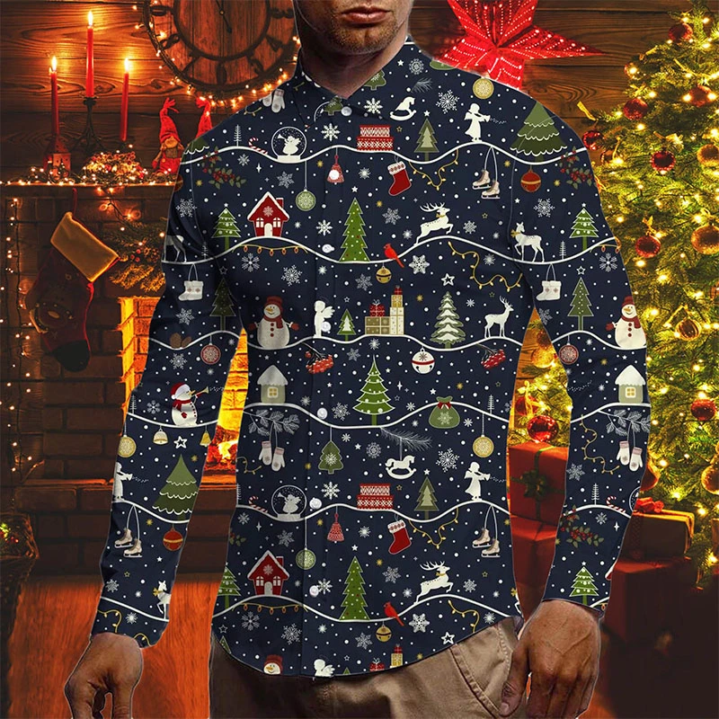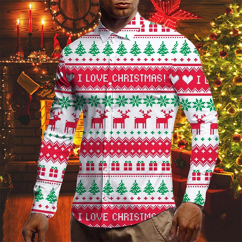 Camisas para homens outono natal férias lapela blusa masculina férias moda roupas masculinas diariamente rua camisas de manga longa botões