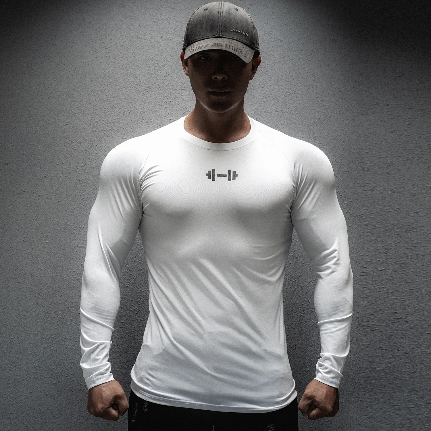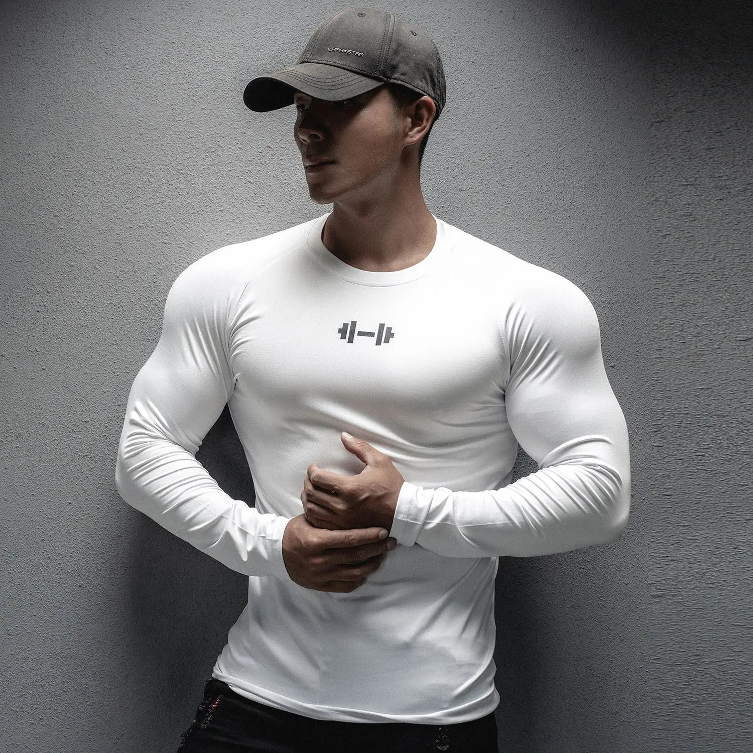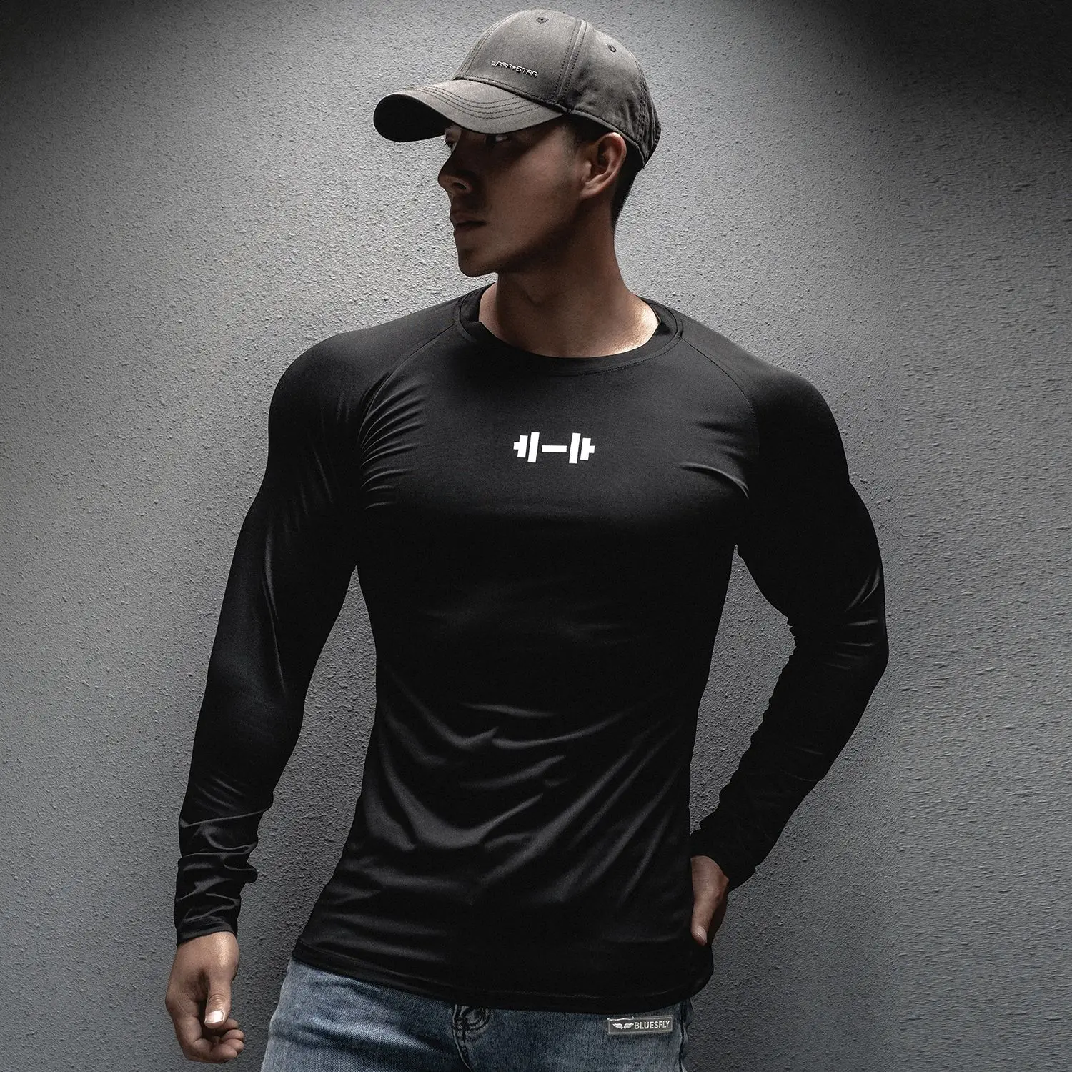 - > Camiseta de manga comprida seca rápida masculina, tops esportivos musculares, corrida de lazer, nova para primavera e outono