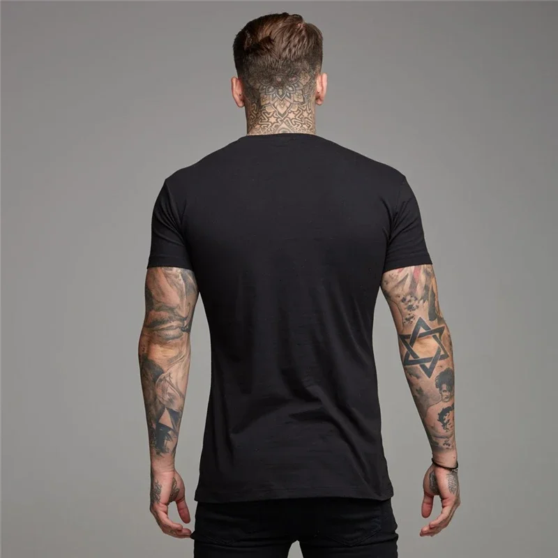 Camiseta de manga curta para musculação masculina, camiseta esportiva, roupa de algodão, gola V, respirável, ginástica, fitness, treino, verão