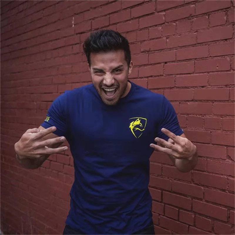 - > Camiseta esportiva masculina de manga curta elástica, Fitness ao ar livre, Corrida, Ginásios, Tendência da moda, Verão, 2022
