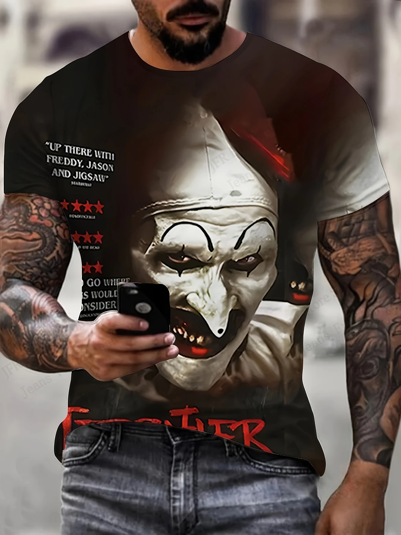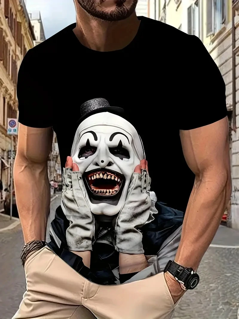Camiseta masculina com estampa 3d horror terror terrorífico, moda casual feminina, manga curta grande, camisetas de halloween, roupas esportivas