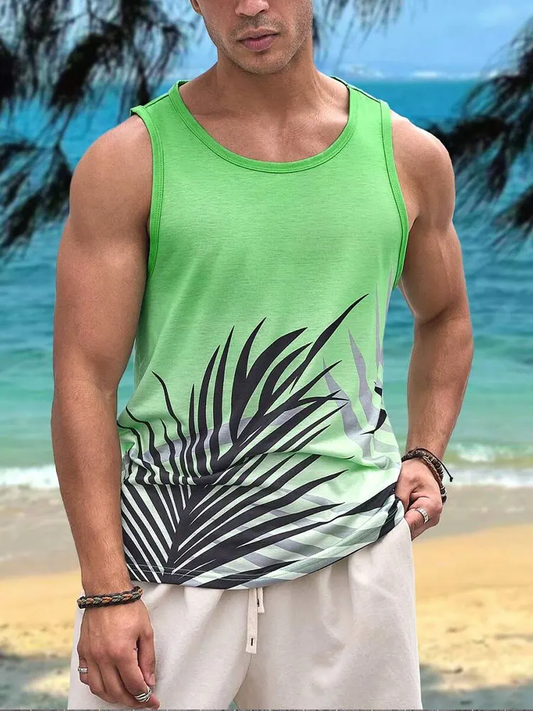 Camisola regata sem mangas estilo havaiano masculina, top casual diário, moda praia ao ar livre, gola redonda, verão, novo, 2022