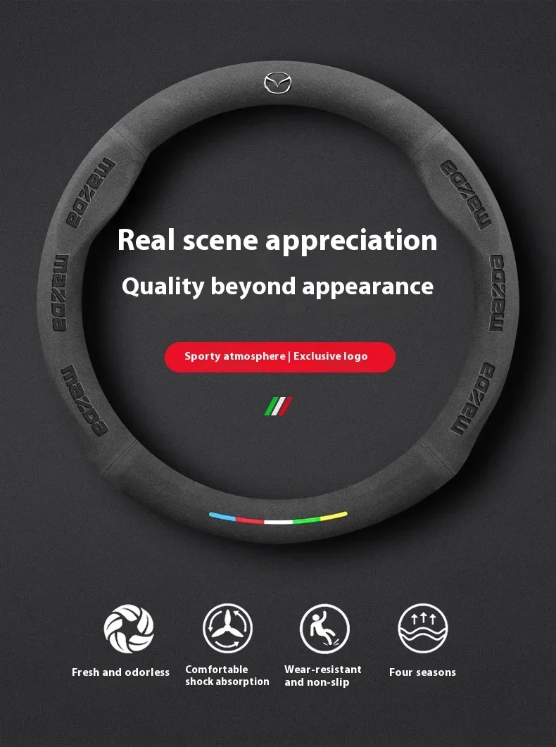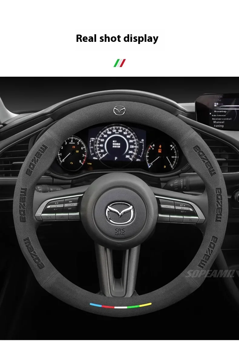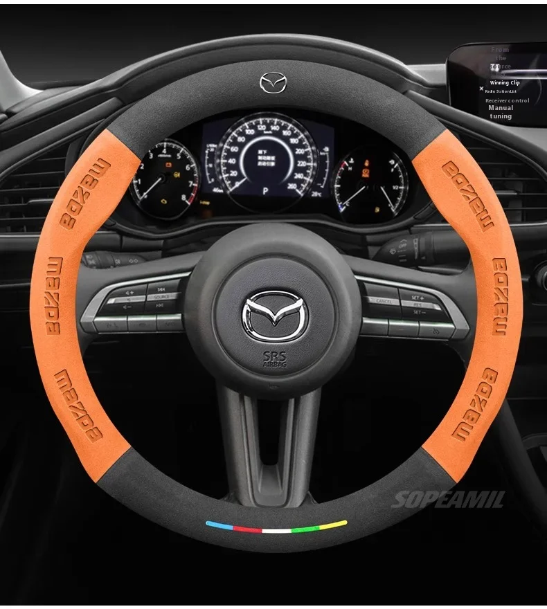 - > Capa de camurça para volante de carro, para mazda 3 5 6 skyactiv axela atenza cx30 cx50 cx5 cx7 cx8 cx9 mx5 rx7 rx8 bt50, acessórios automotivos