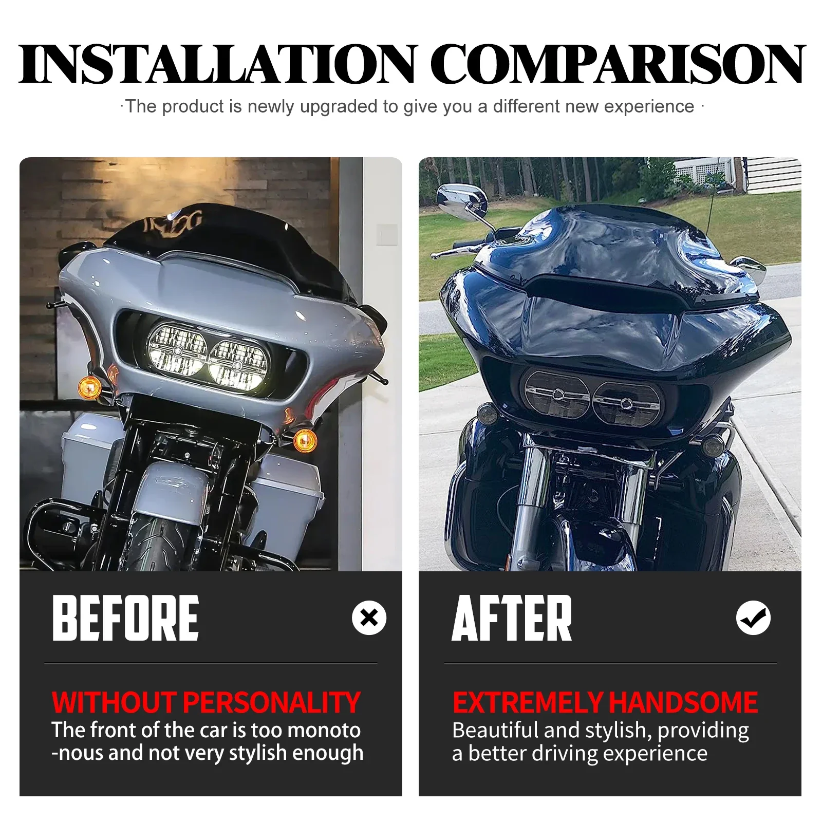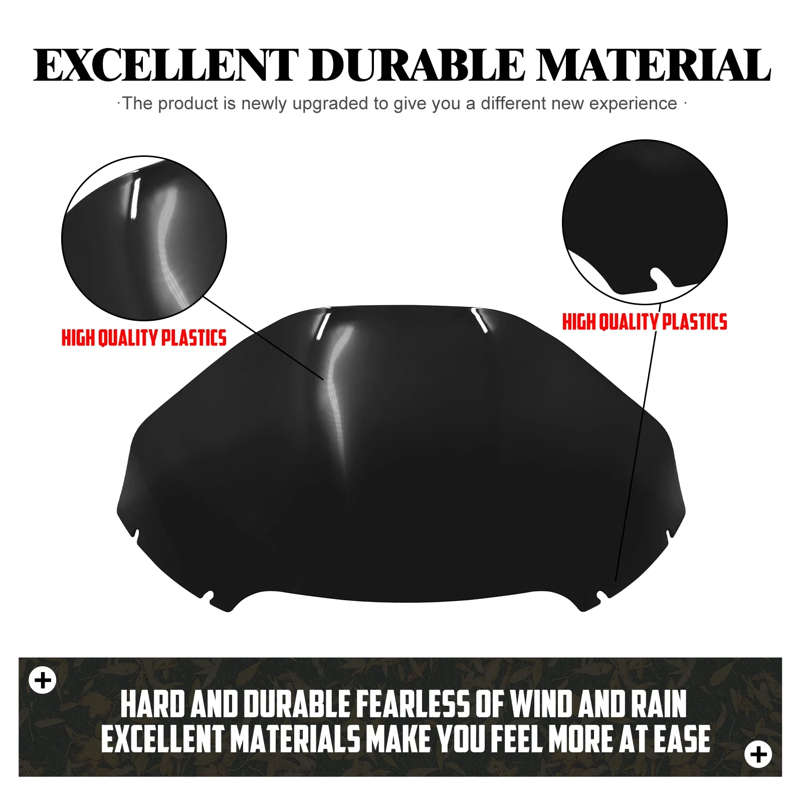 (2)Projetado de acordo com o princípio da Aerodinâmica.O design especial da "colisão" na borda externa permite redirecionar habilmente o fluxo de ar ao redor das laterais da bicicleta, gerando força descendente adicional na frente.Como resultado, a motocicleta experimenta maior estabilidade, principalmente em comparação com a condução com um para-brisa original.Esta estabilidade aprimorada prova especialmente vantajosa durante passeios em alta velocidade e em condições climáticas desafiadoras.